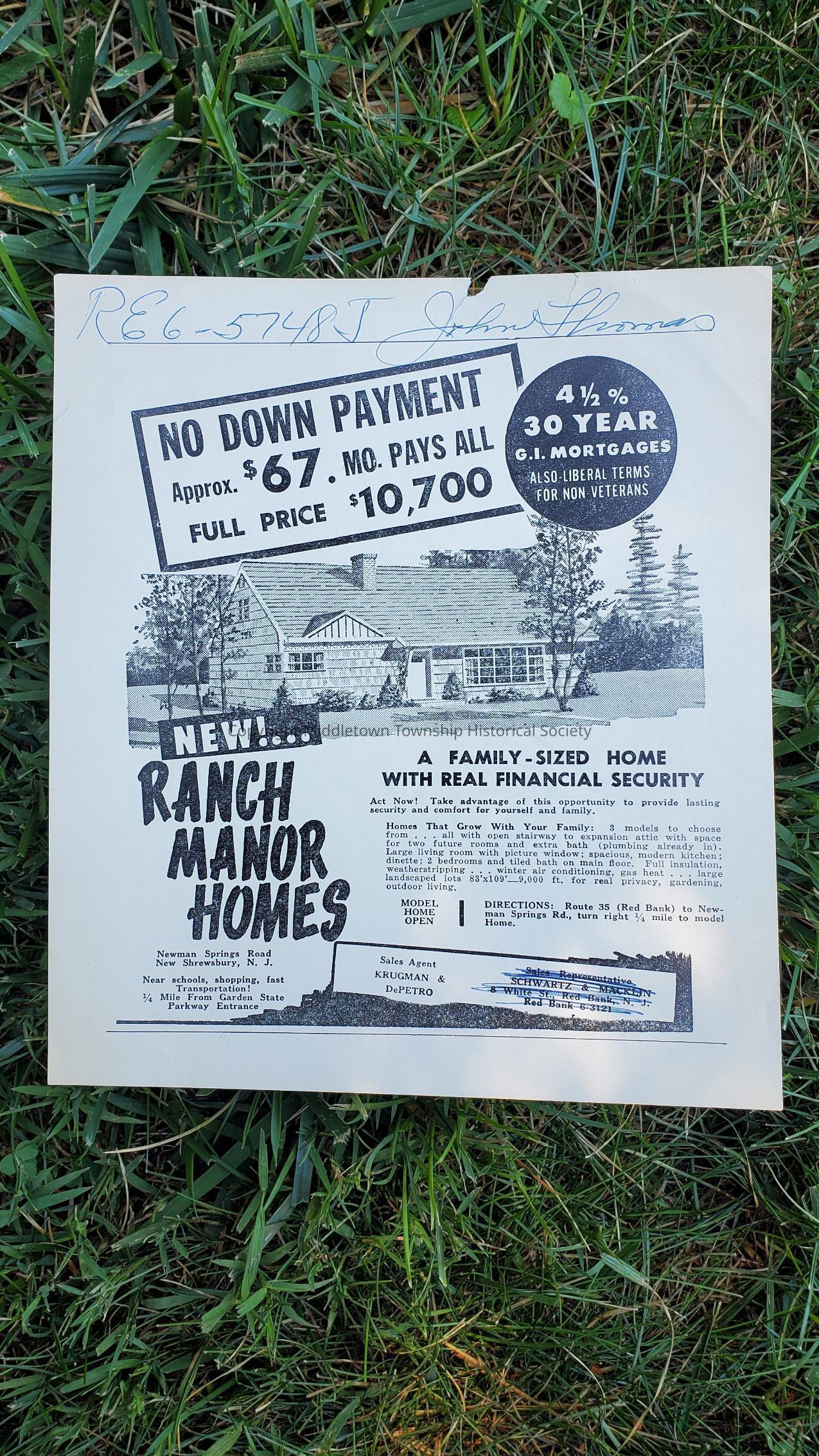 Ad for Ranch Manor development in Tinton Falls, circa 1953-4.