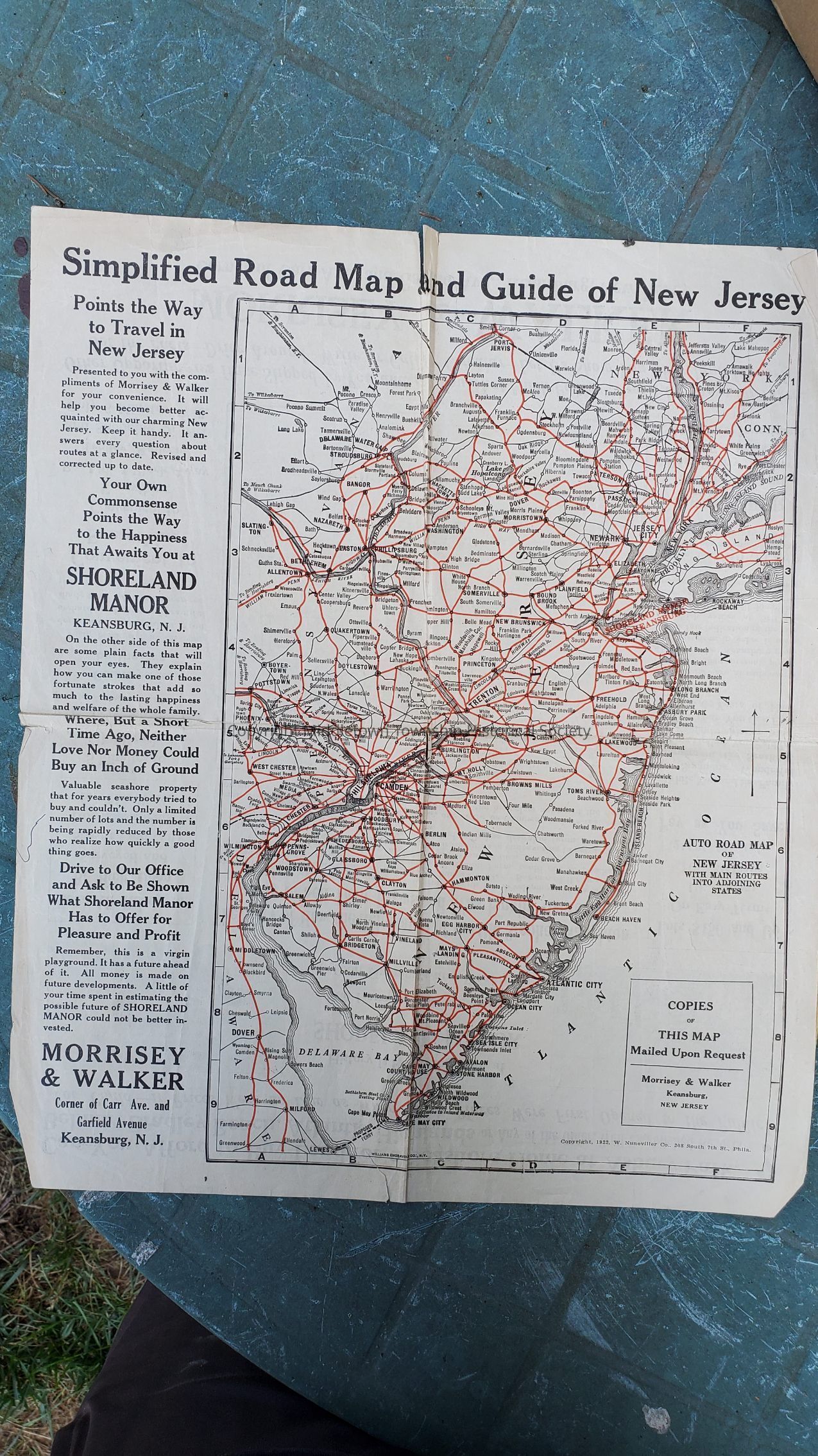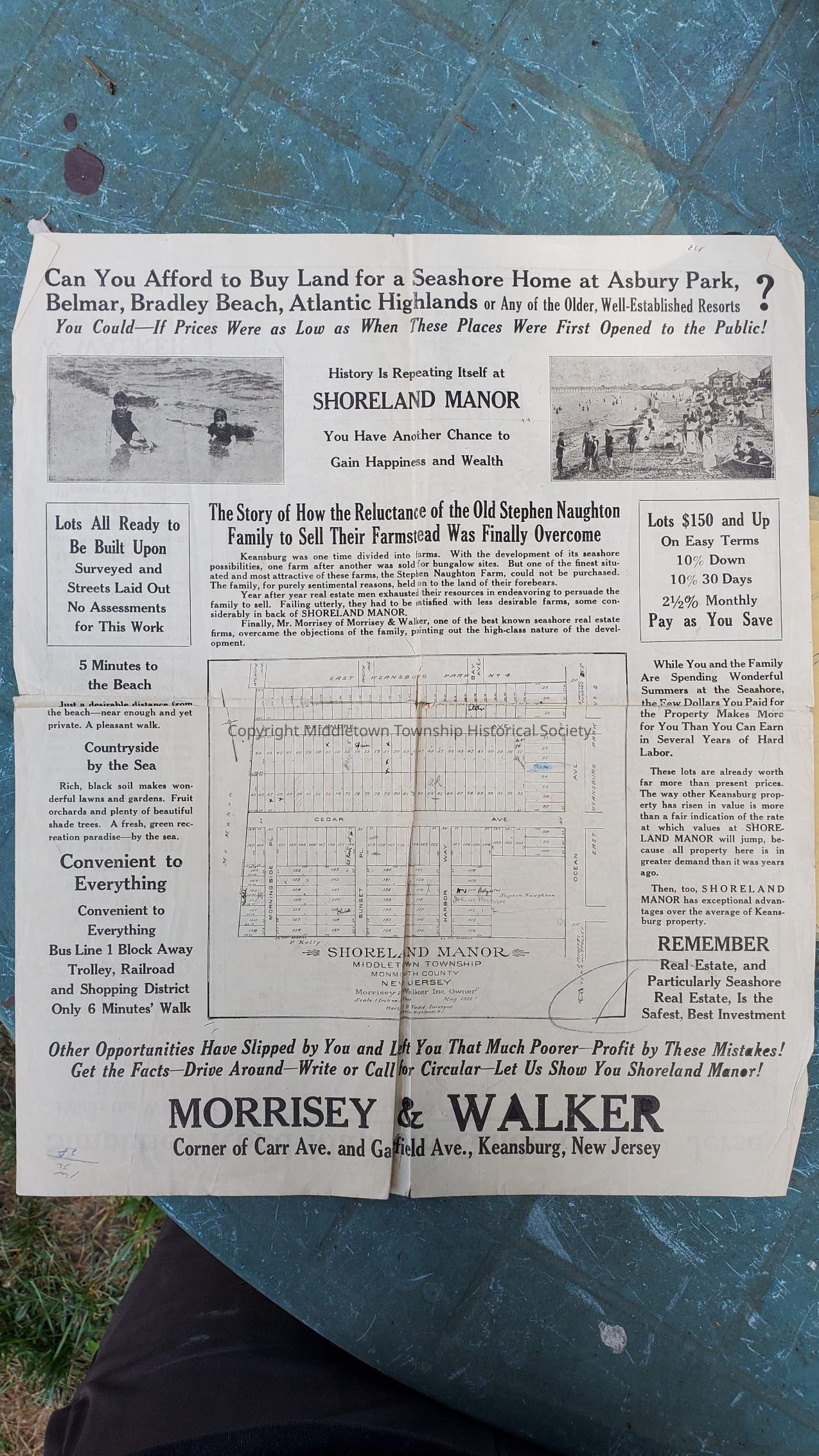 1922 double-sided advertisement for the Shoreland Manor development in East Keansburg. Also a colored onion skin mapAcquisition