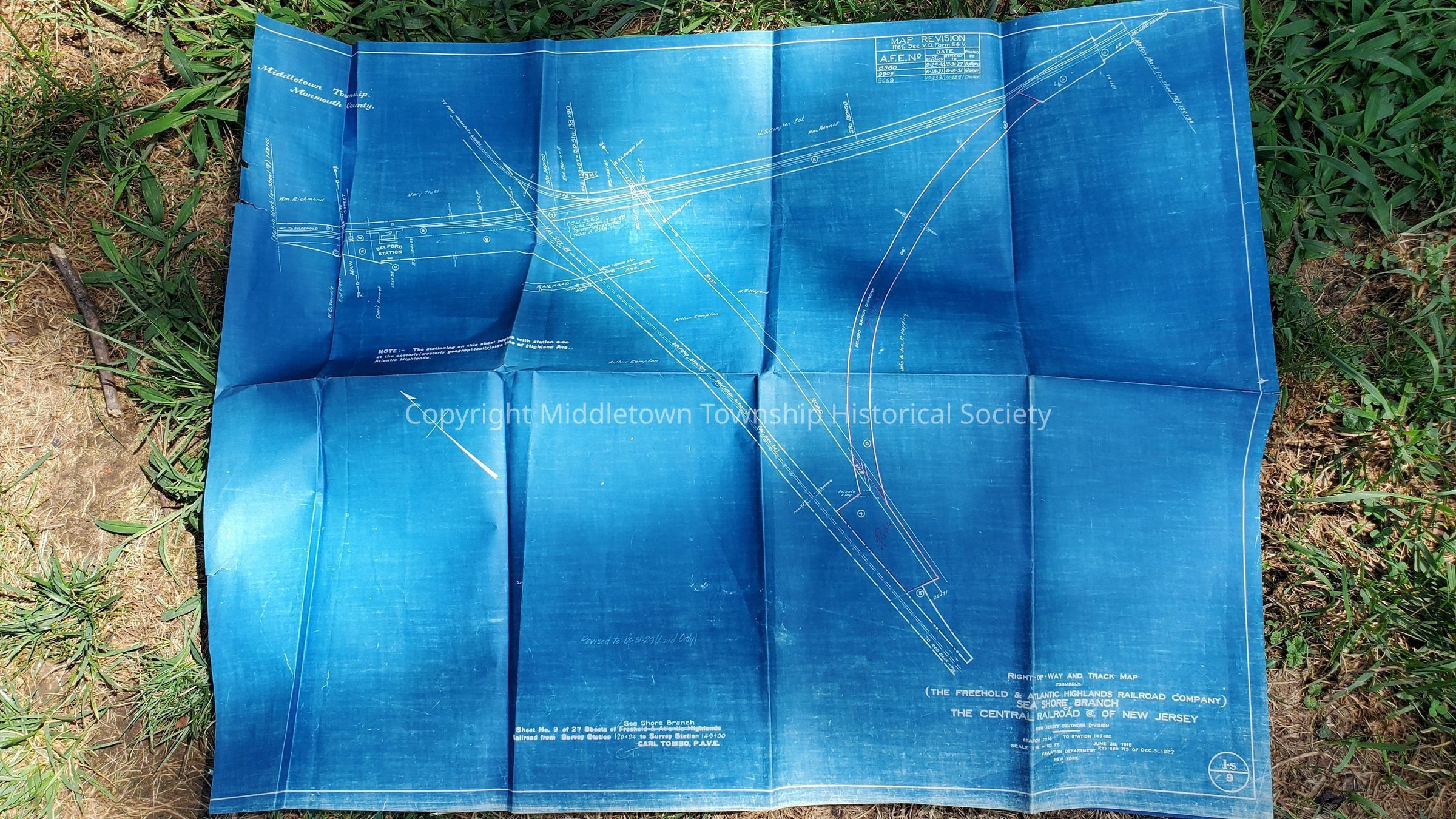 Right of Way and Track Map for Sea Shore Branch of the Central Railroad of New Jersey (shows Belford Branch Connection, Main st, East Road and Railroad Ave, 1927)