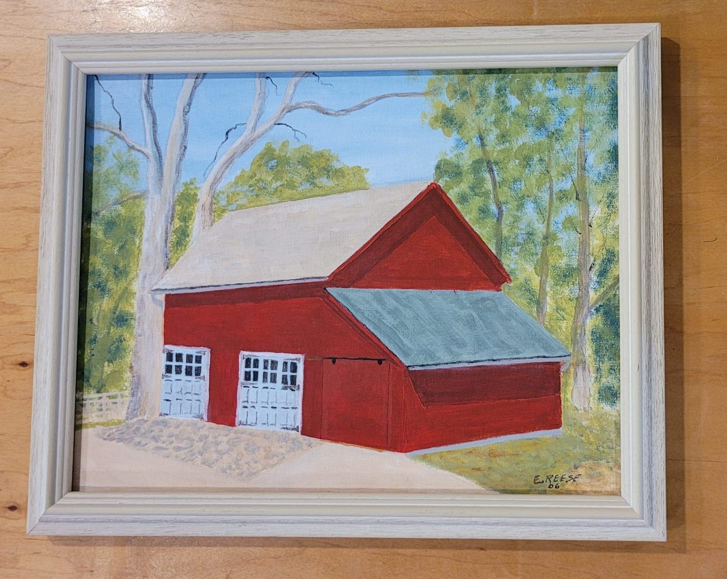 Framed painting on canvas of visitor center