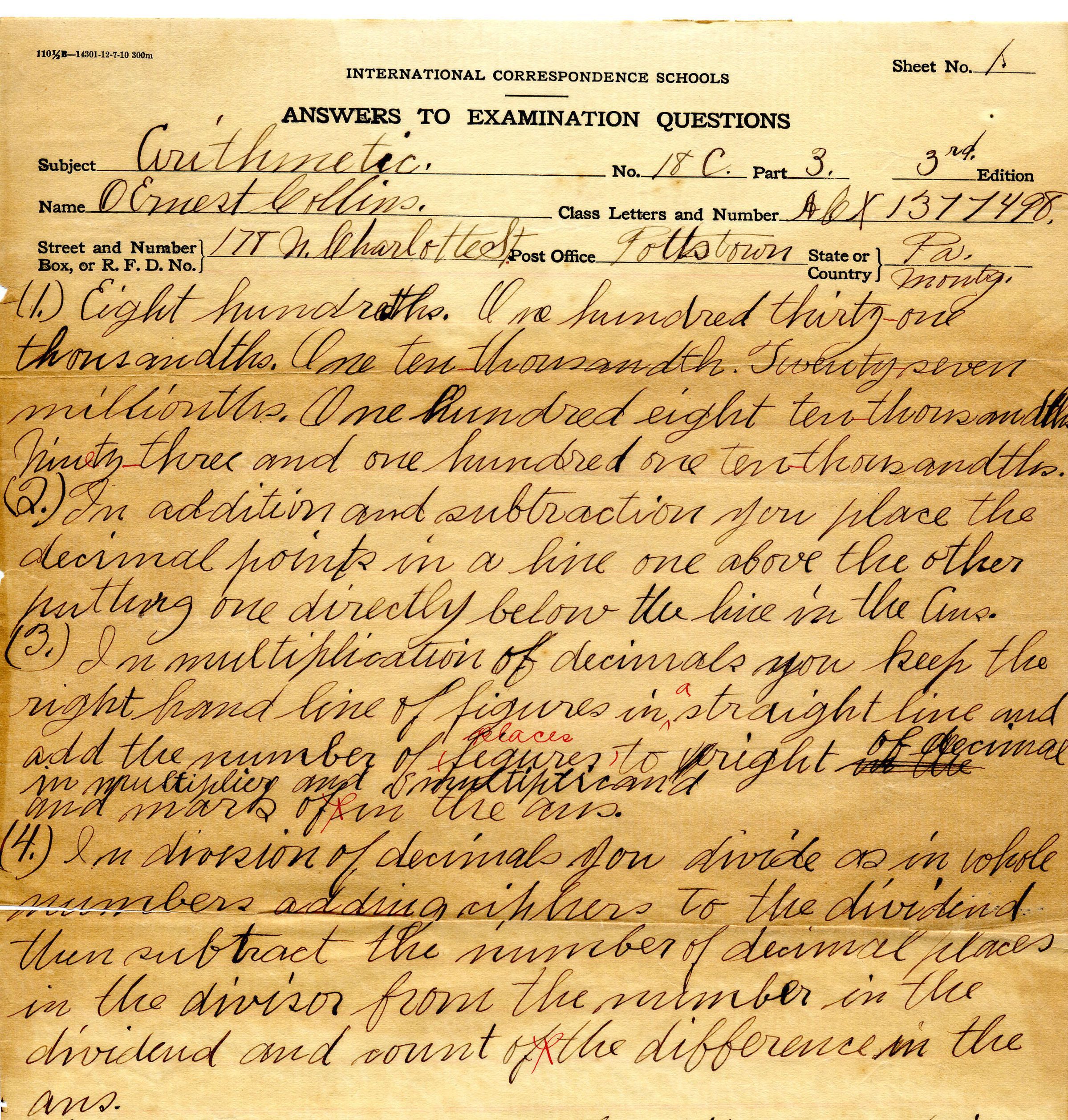 but Collins address is Pottstown on this sheet and St. Peters on the