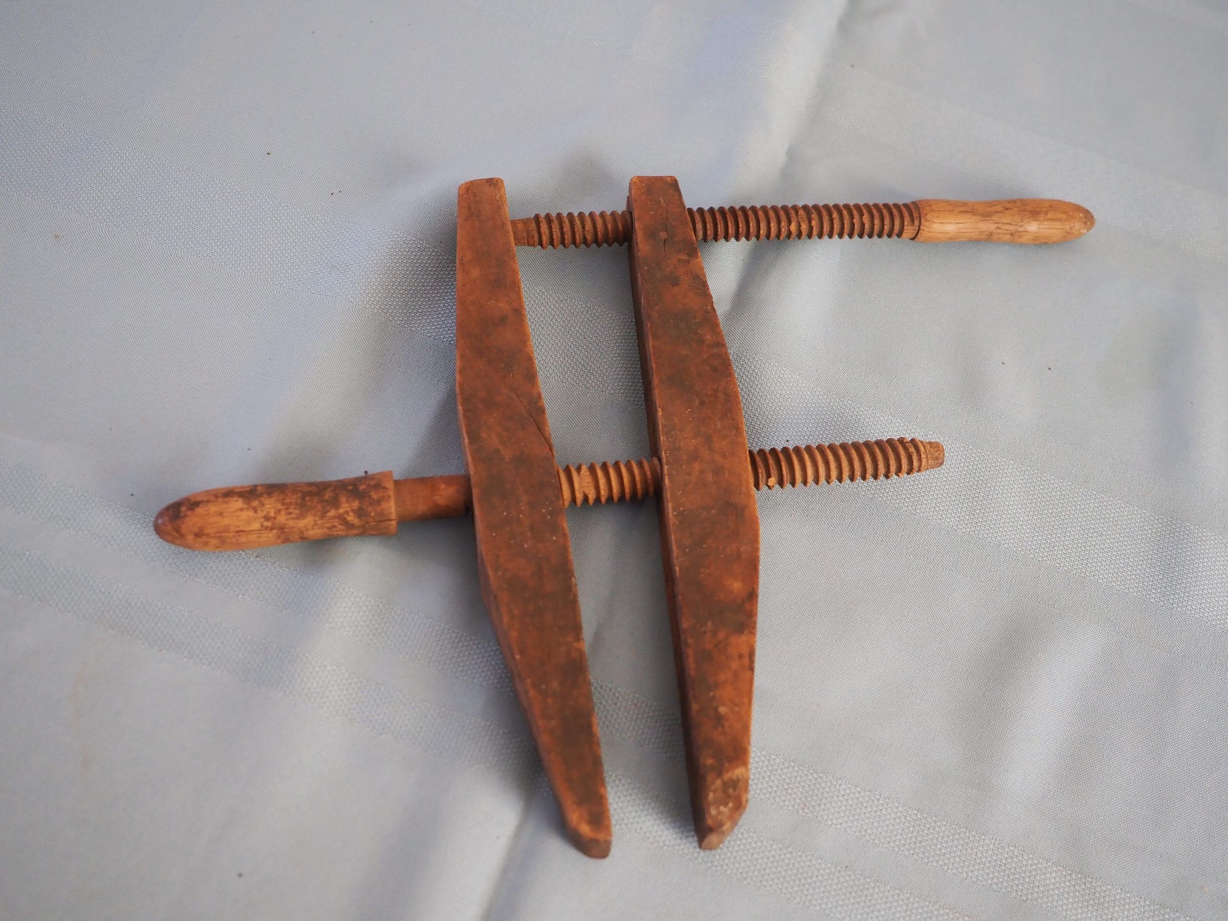 Oak wood clamp with 2 threaded screws, 2 wood bars