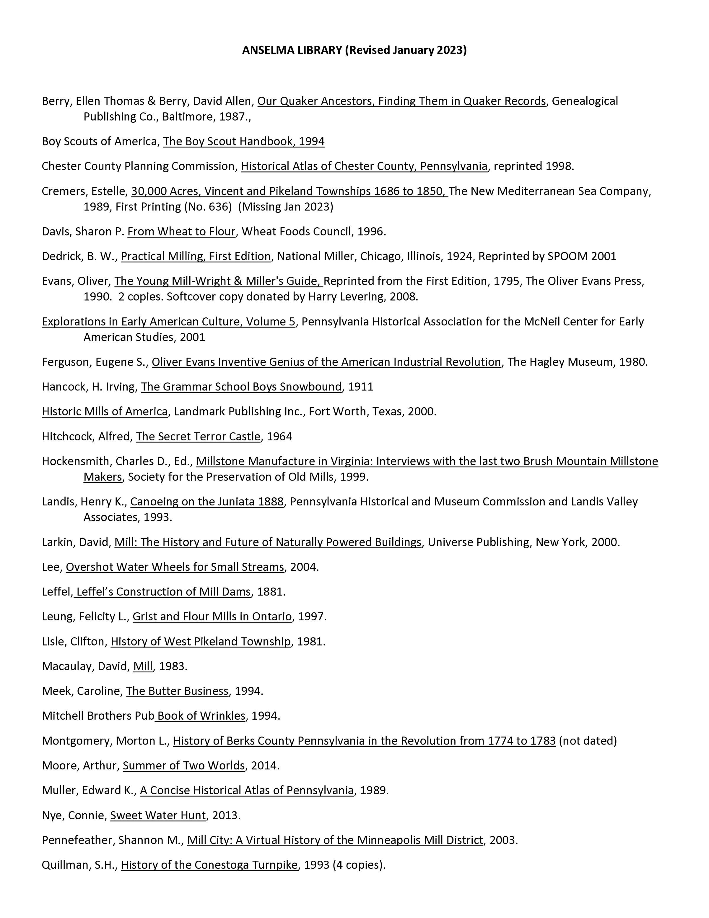 Anselma Mill Library - Books and Periodicals