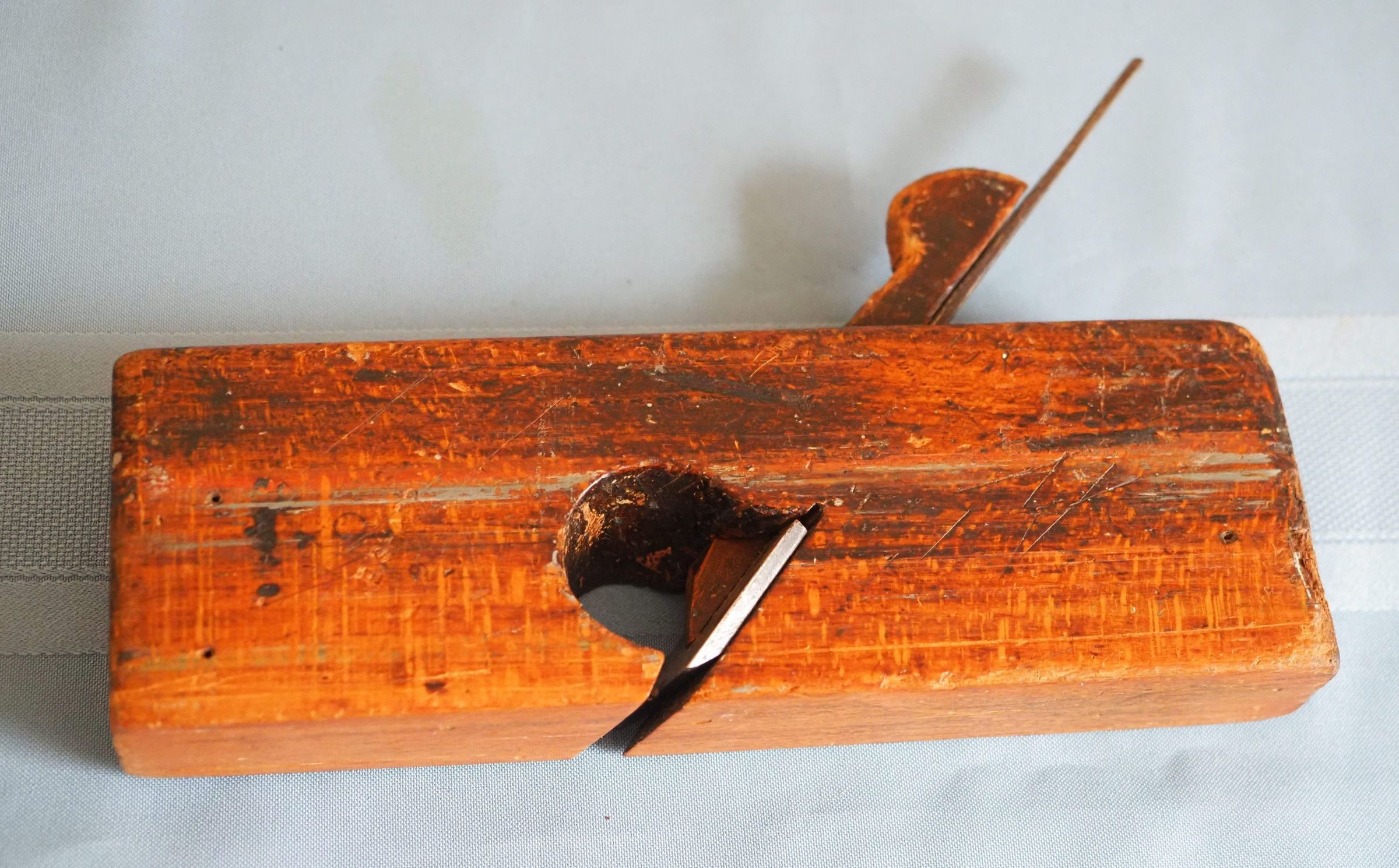 Wood planer with metal blade, wood body and fur shapeInscription/Signature/Marks