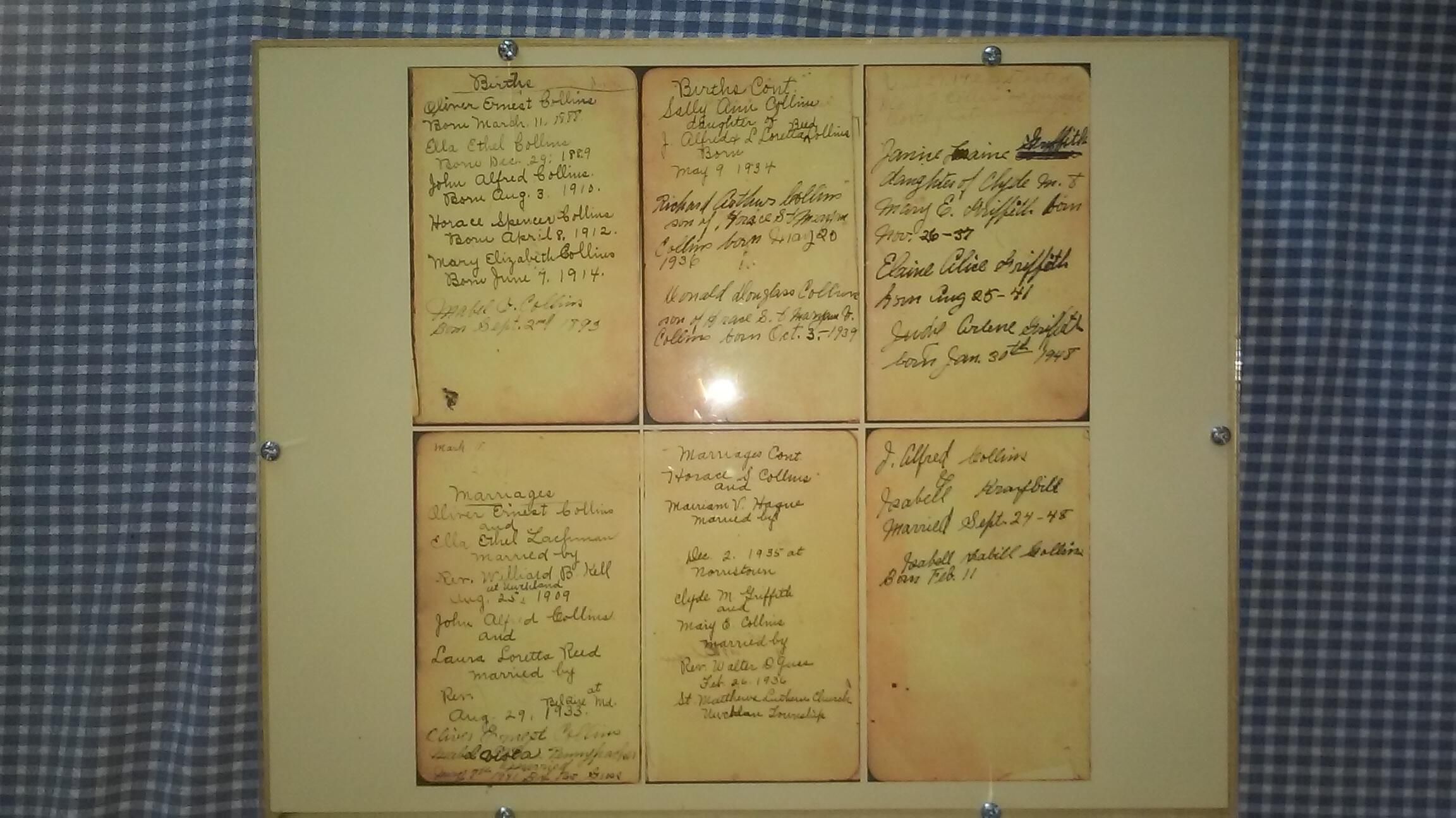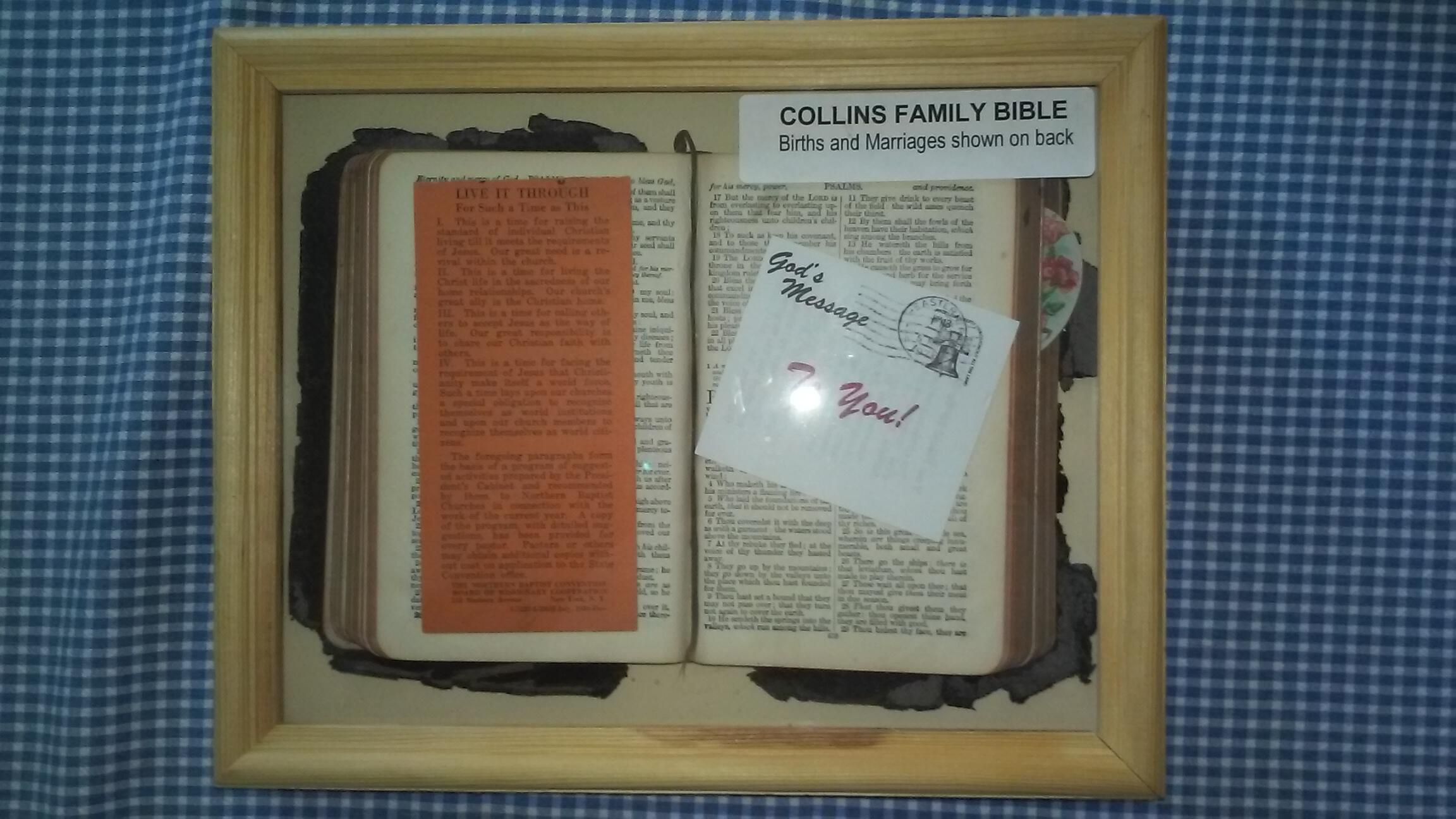 Collins Family Bible, previously mounted in a Shadow Box