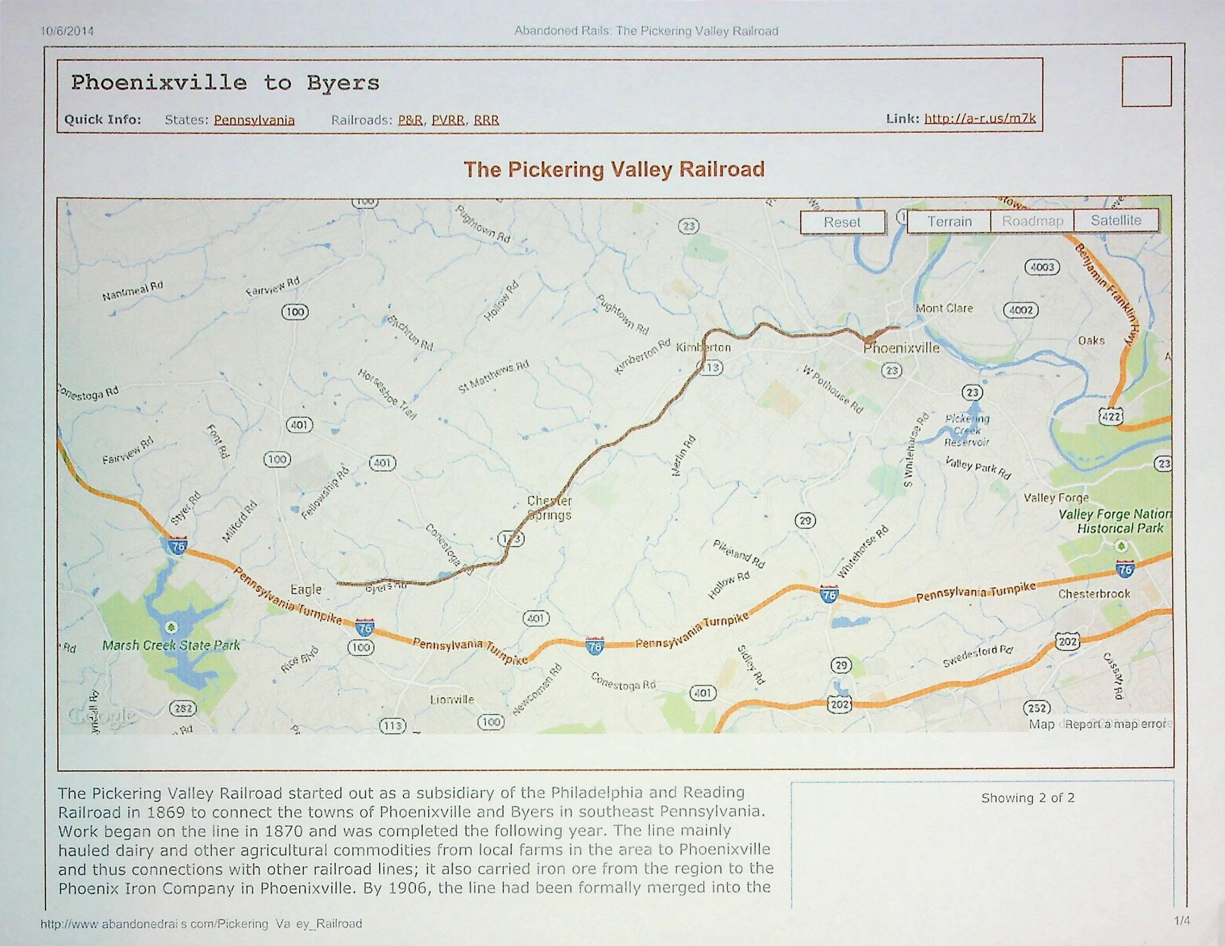 Pickering Valley Railroad Route between Phoenixville and Byers Station 1869