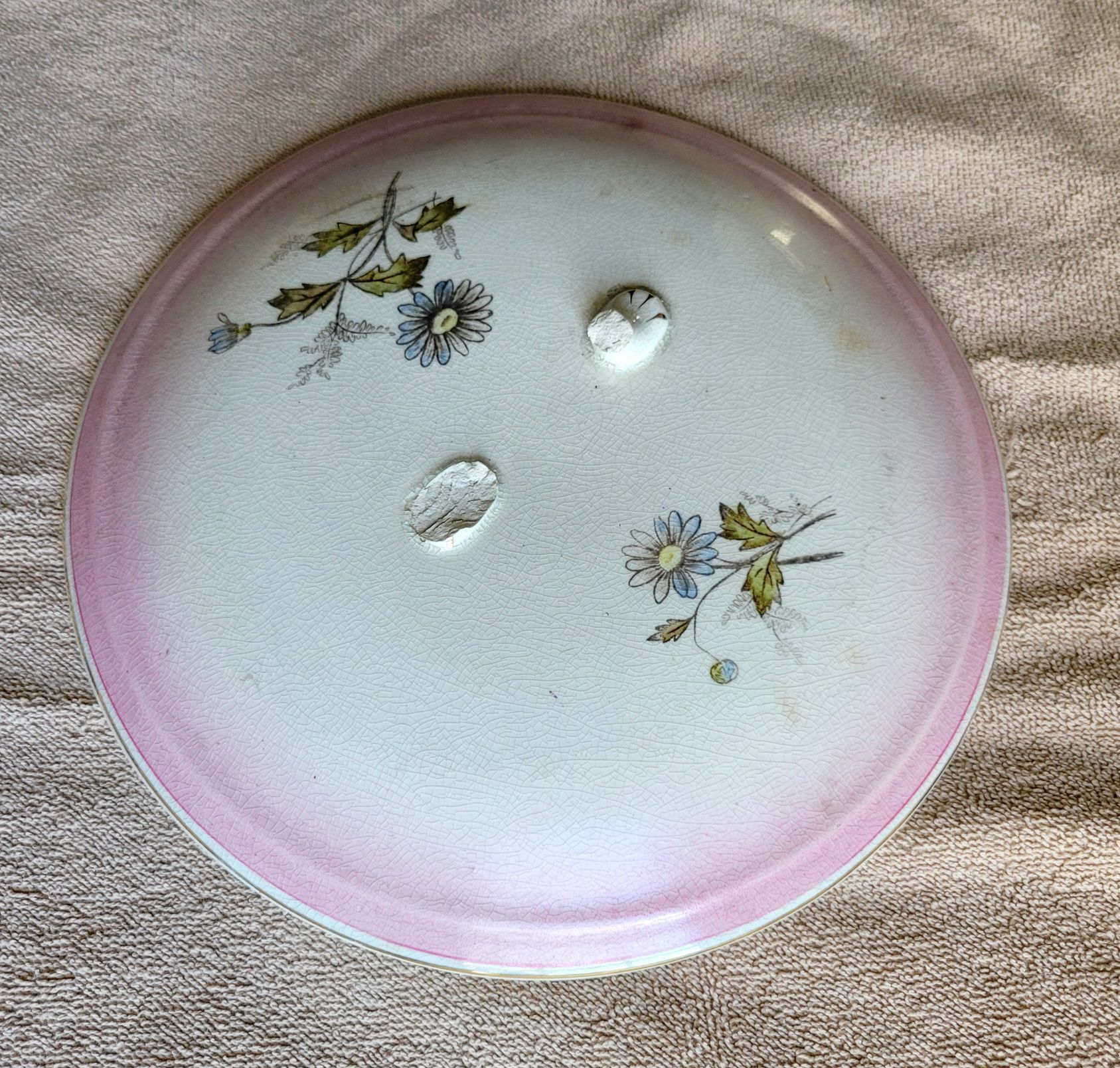 Chamber pot lid, porcelain, ivory with pink and blue flowers