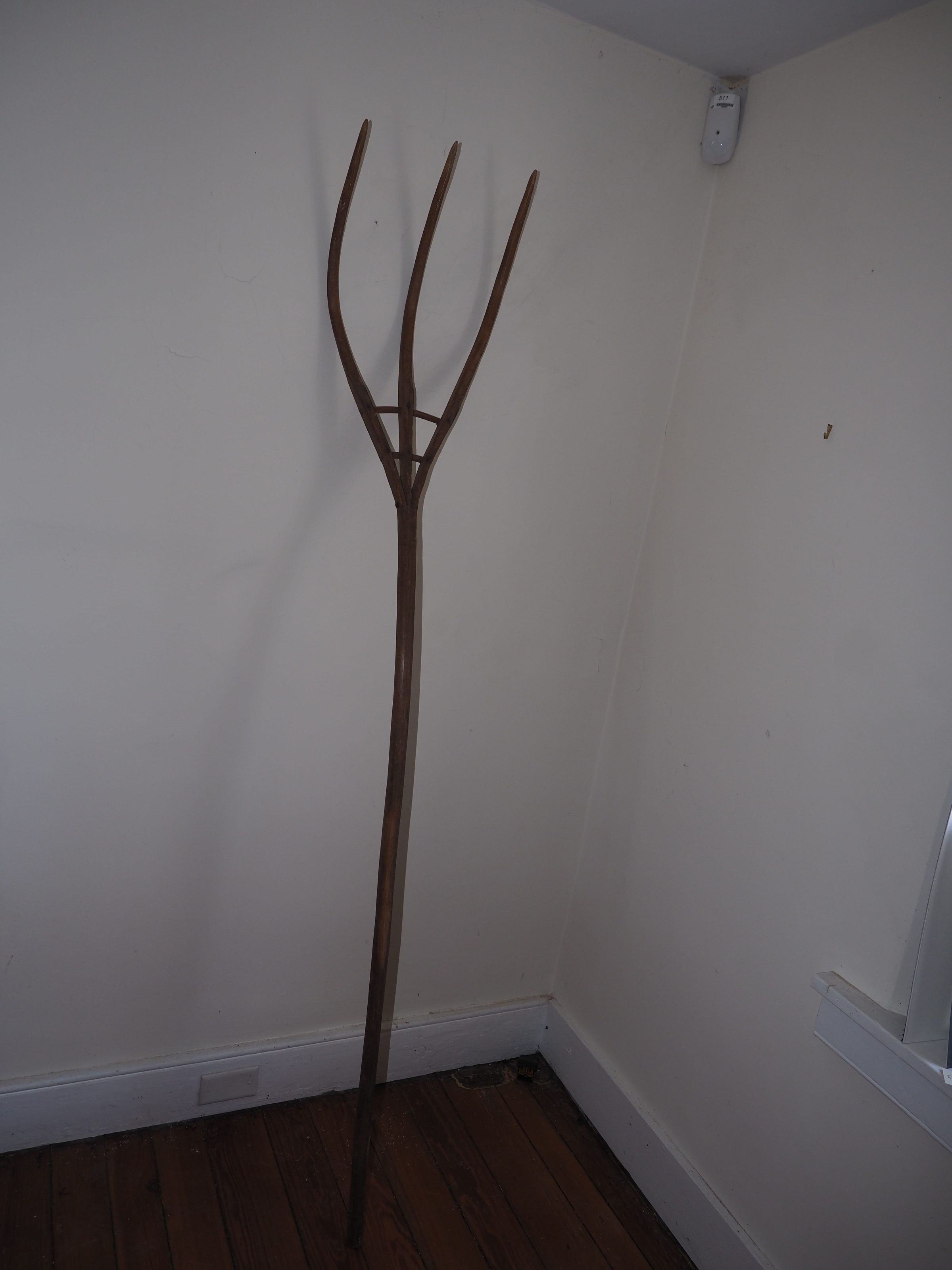 Haying fork, large, with 3 tongs hand made from single shaft of wood
