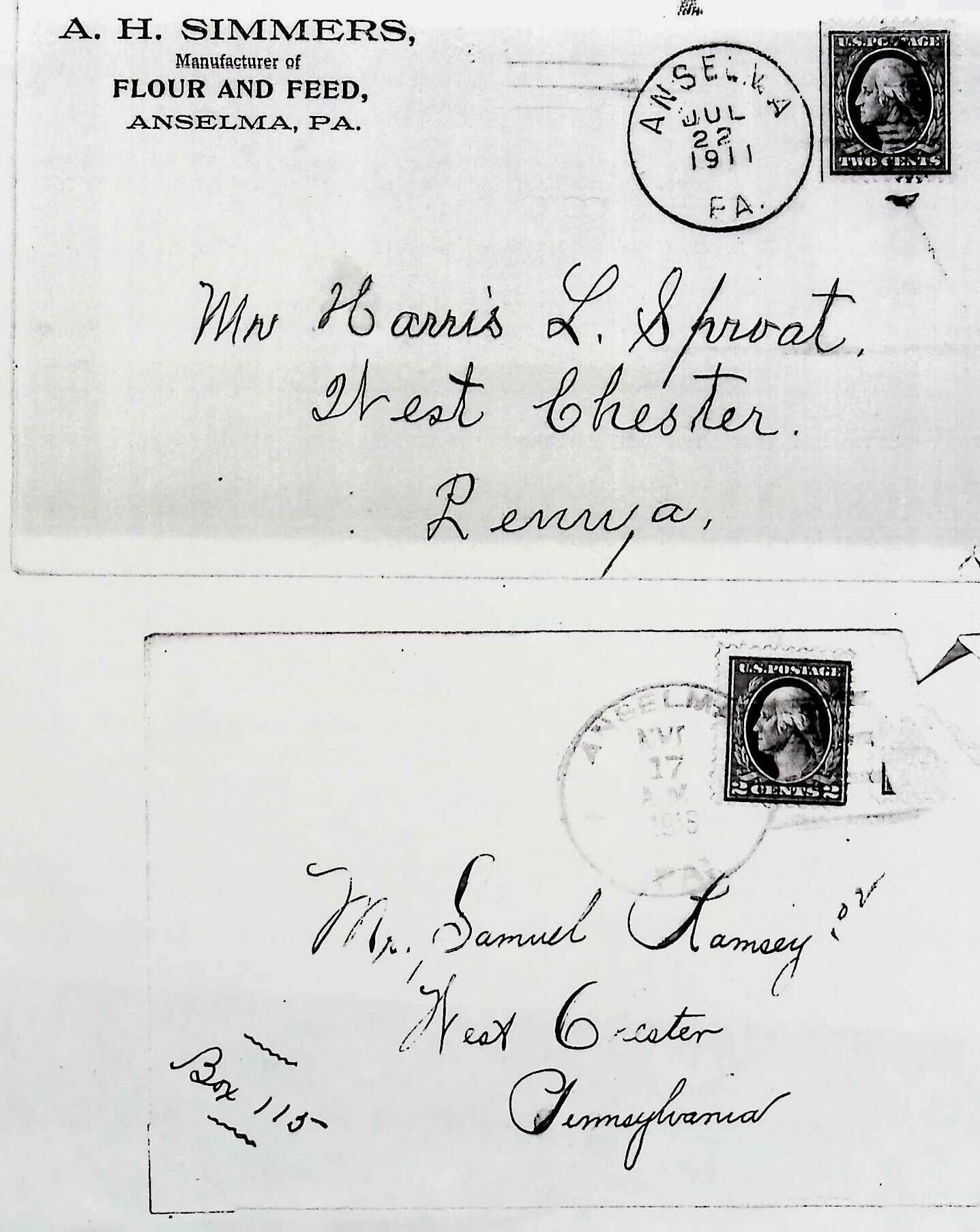 A. H. Simmers, copy of envelopes. Anselma post marks, July 22 1911 and ?