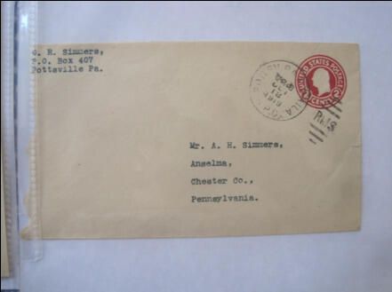 1st Class 2 Cents postage Envelope, postmarked Pottsville PA, RPO