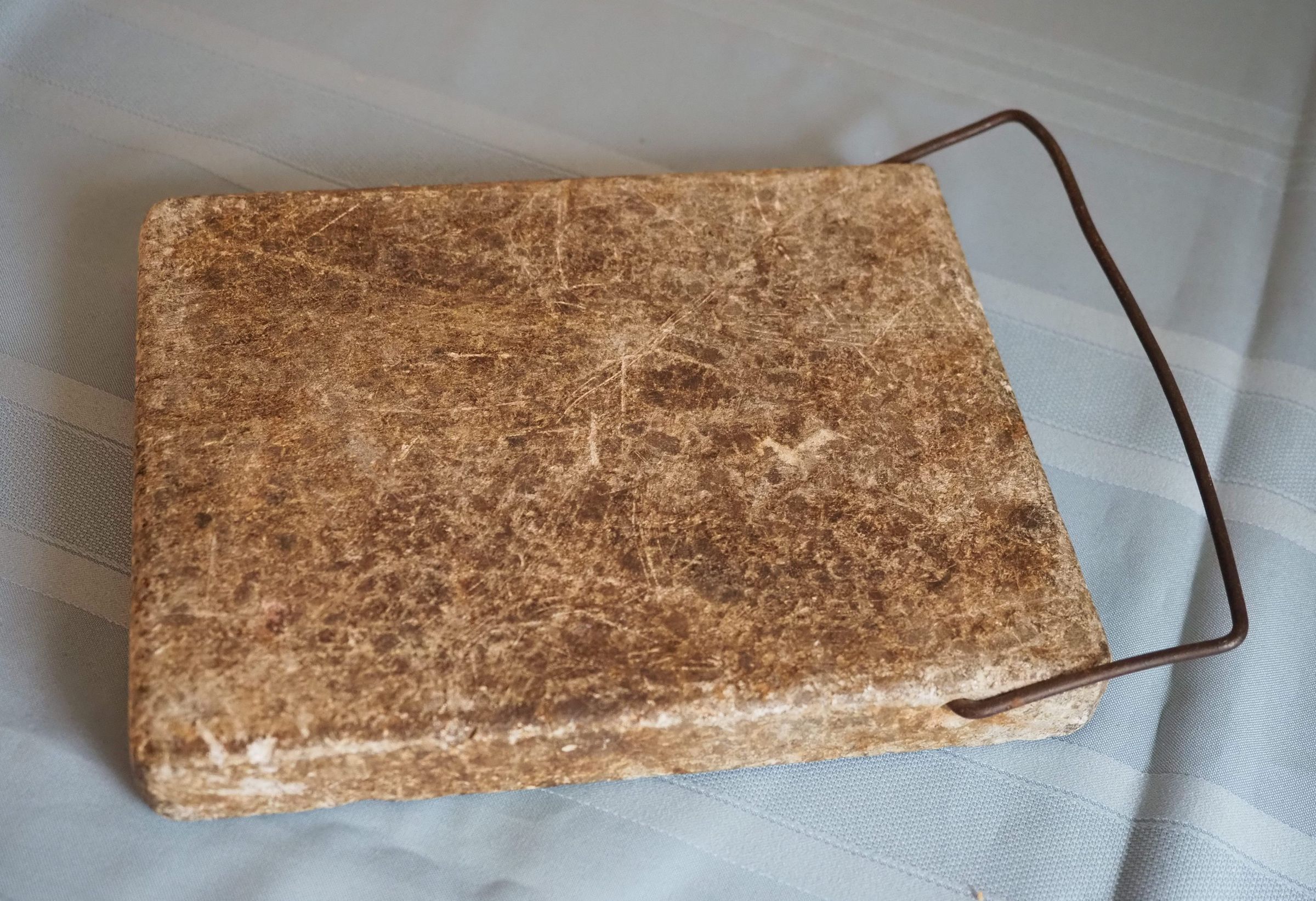 Soap stone foot warmer with wire handle