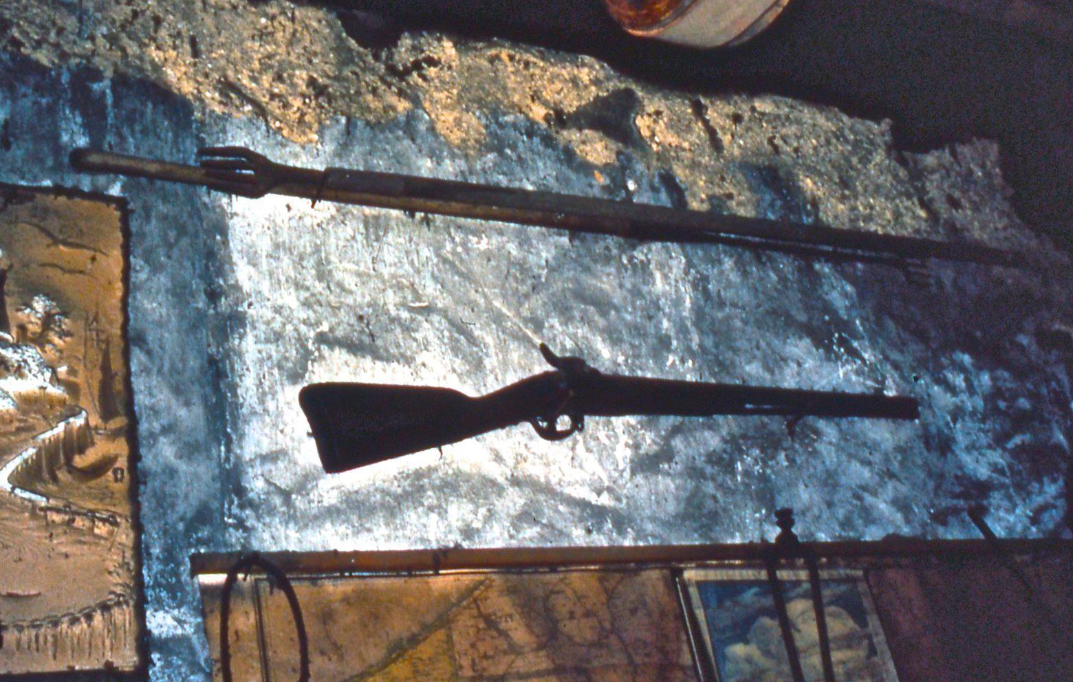 Photo of gun and harpoon on wall