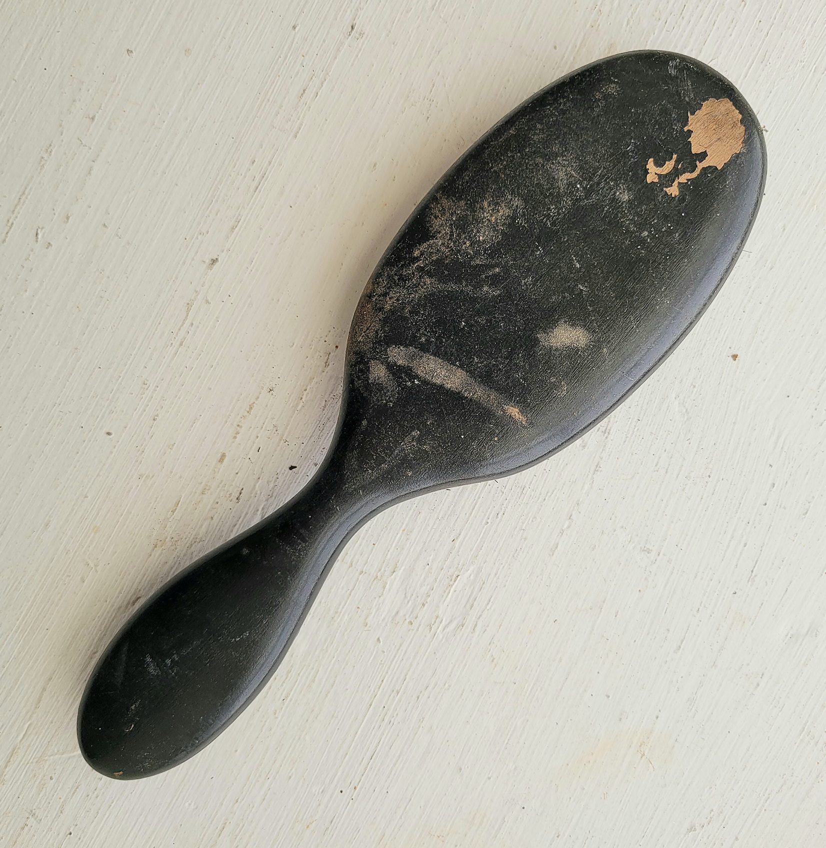 Dark brown wood brush, bristles in metal plate