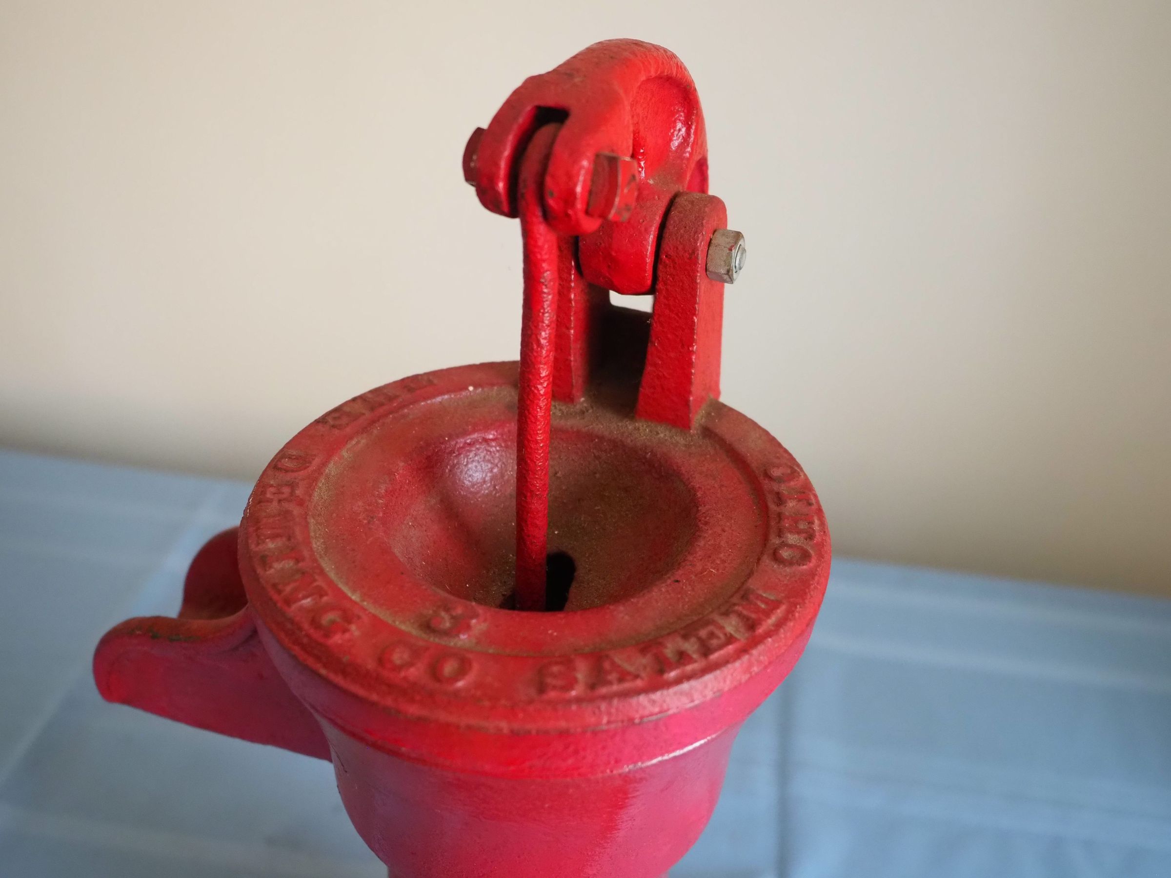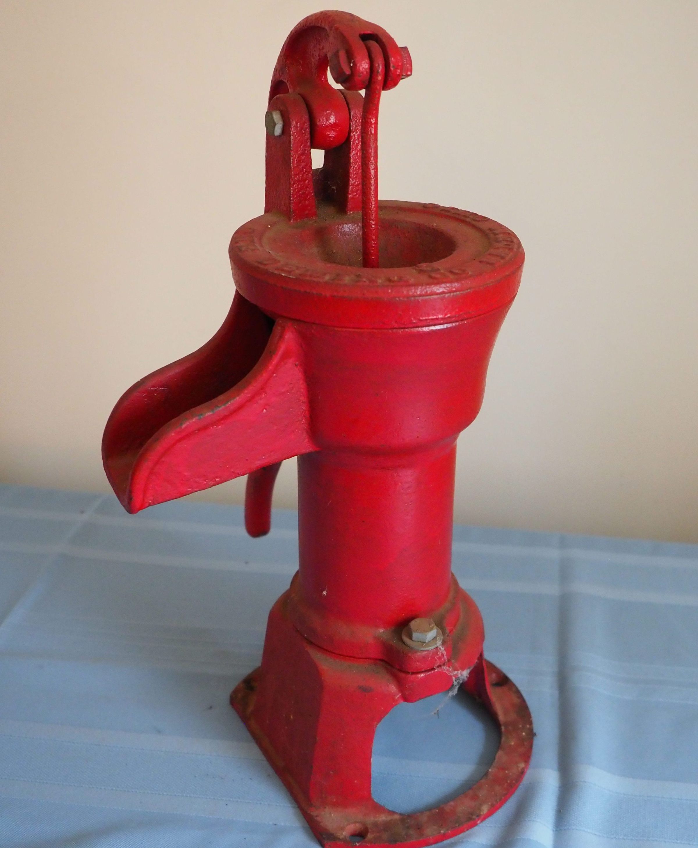Hand pump, painted red