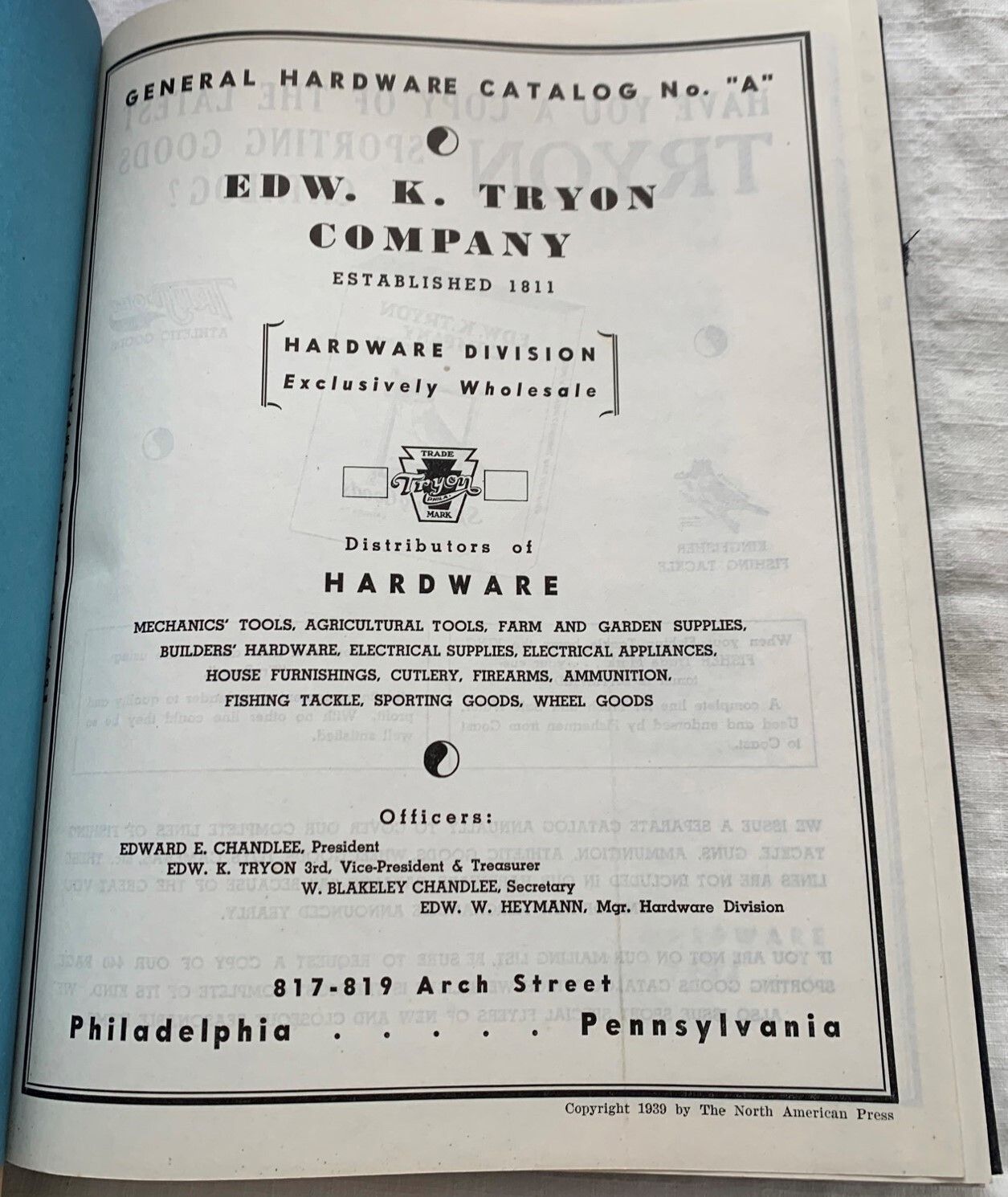 Catalog from Hardware Dept. of Edw. Tryon Co.