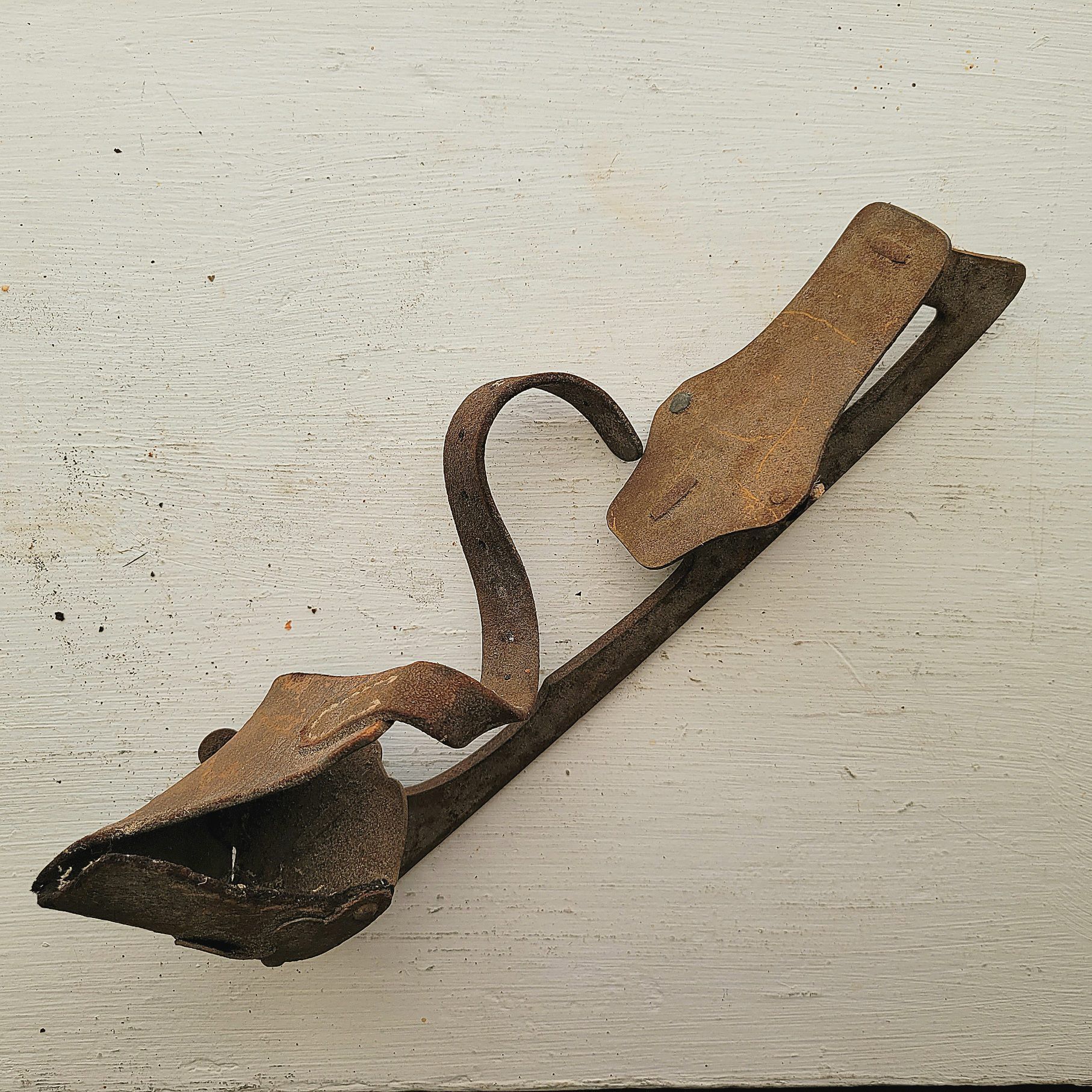 Single ice skate, leather strap