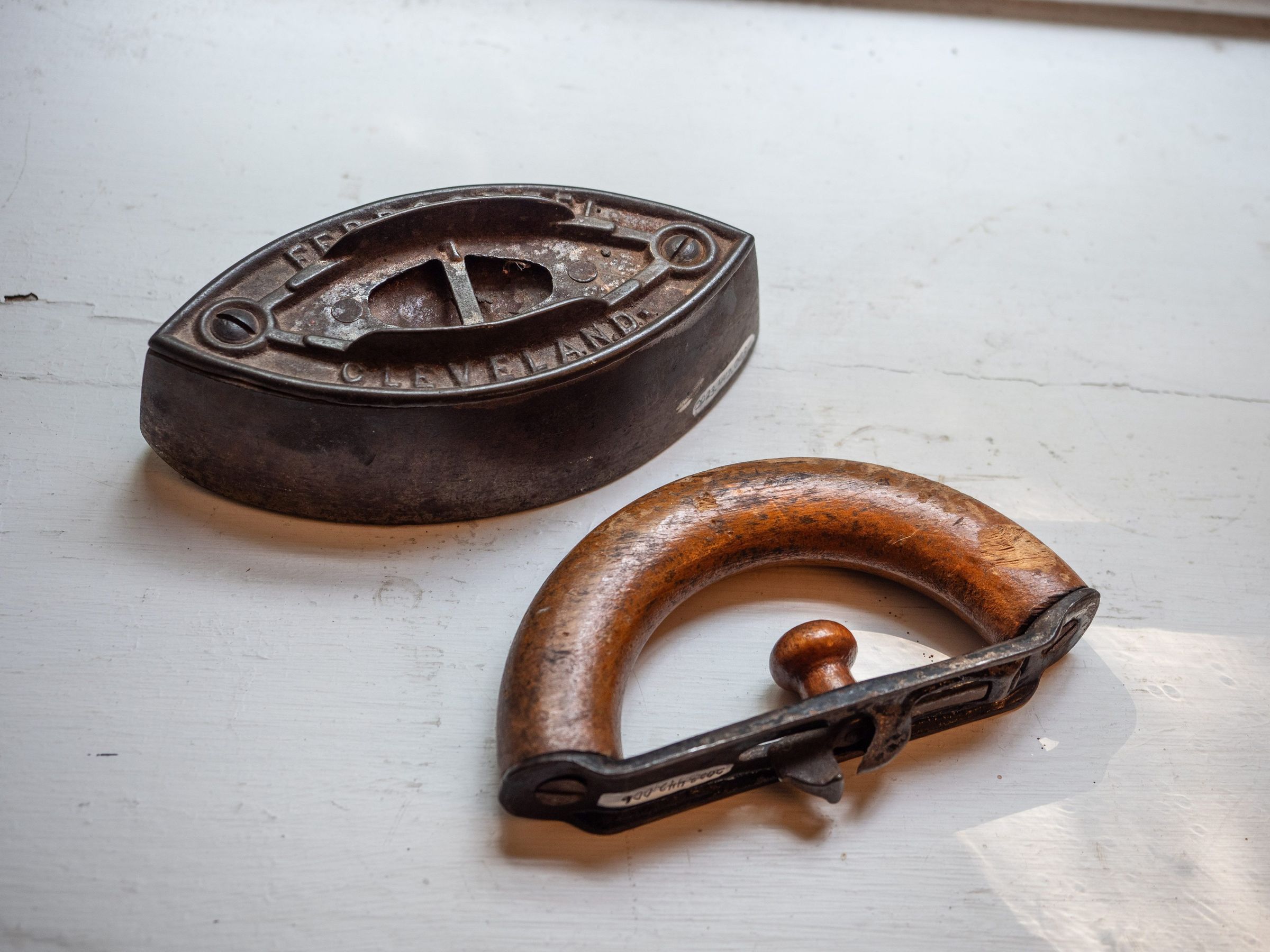 Metal iron with wood handle