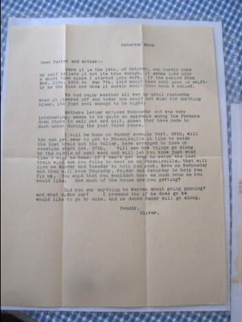 Letter to Allen and His Wife (Annie) from Son Oliver. Written October