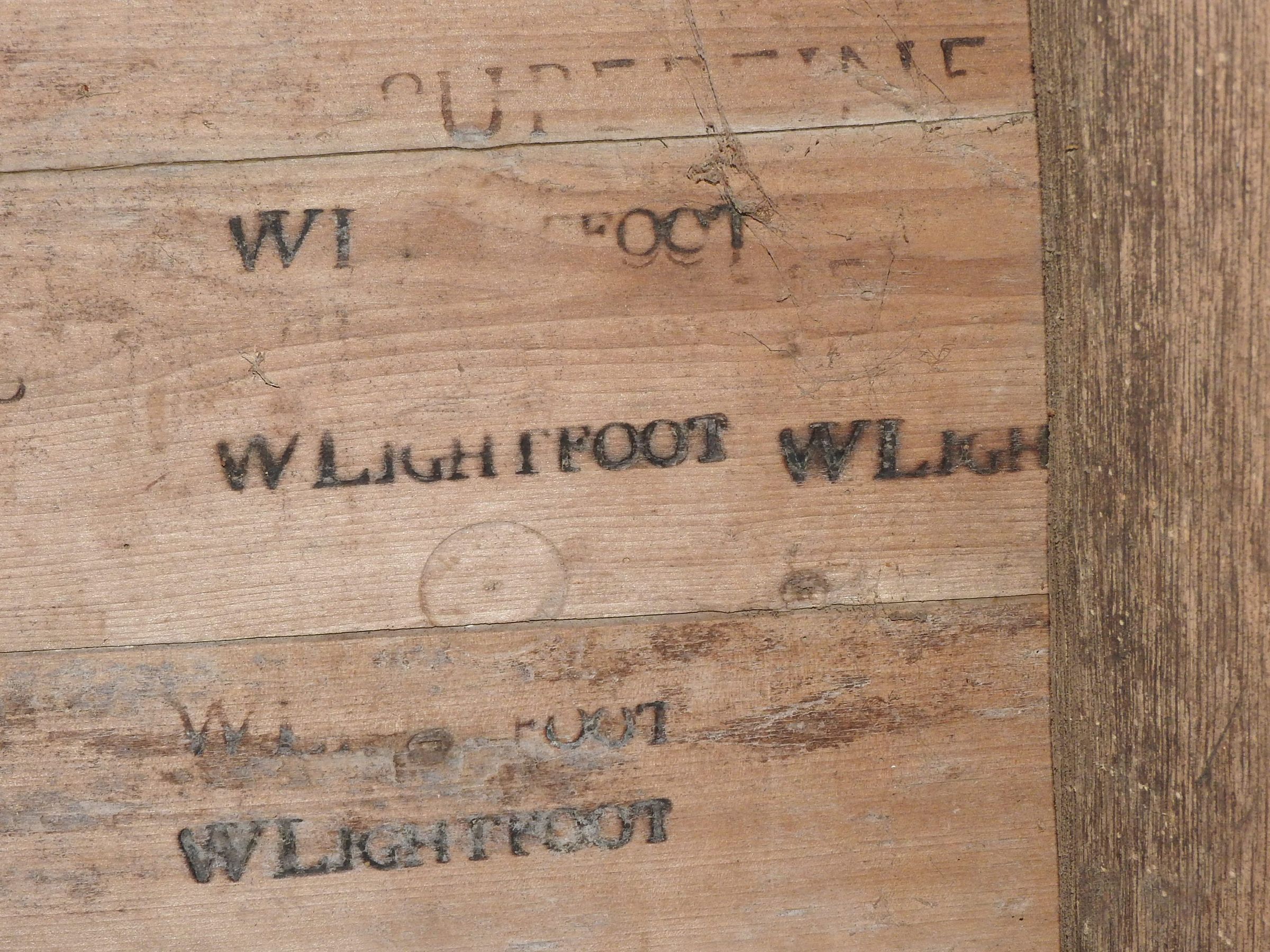 William Lightfoot brand on wooden second floor floorboard. Can be viewed from first floor.