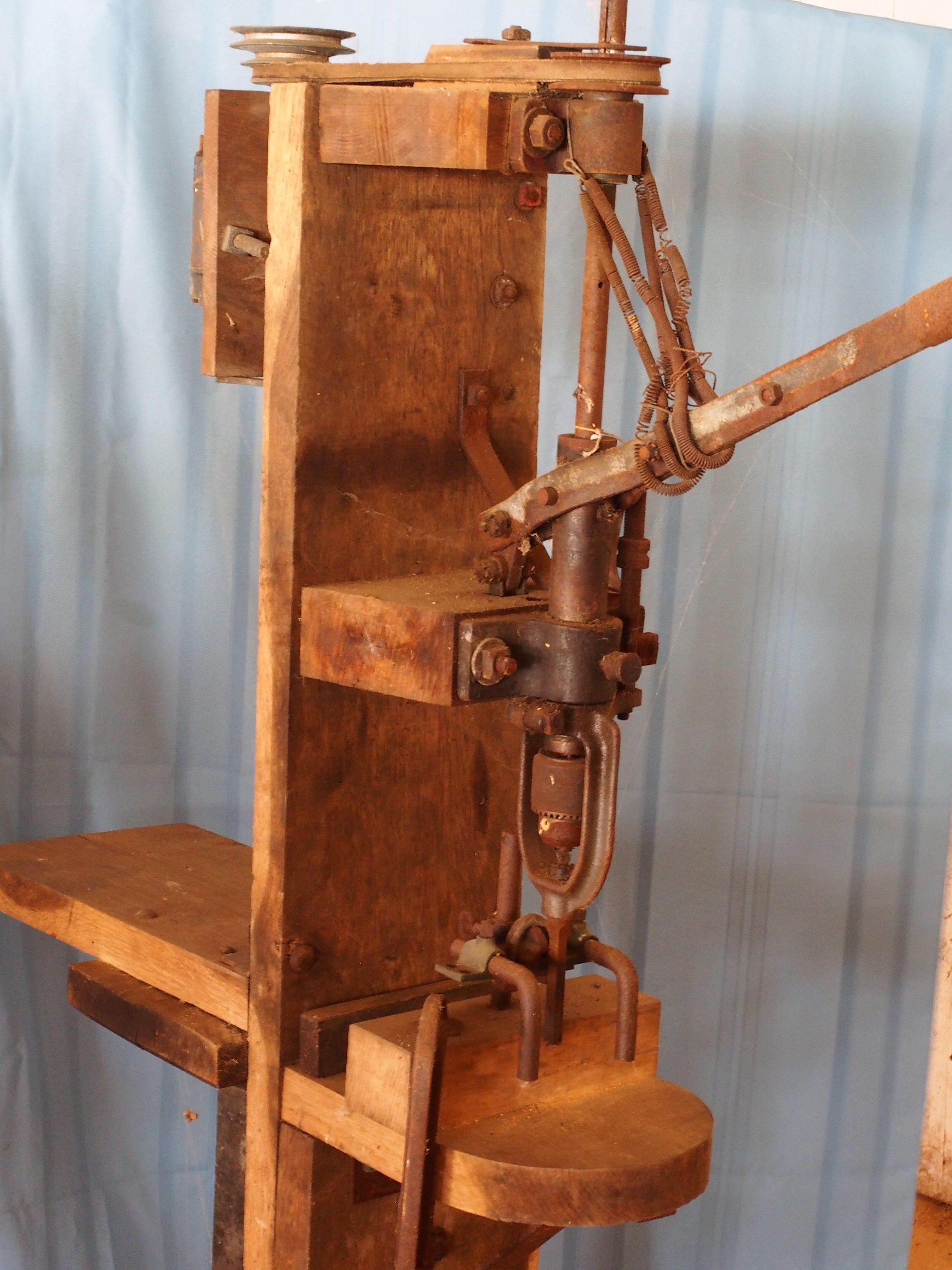 Nothing is known about when Mr. Collins built this machine or for what purpose. It is a fairly conventional mortising machine design.
