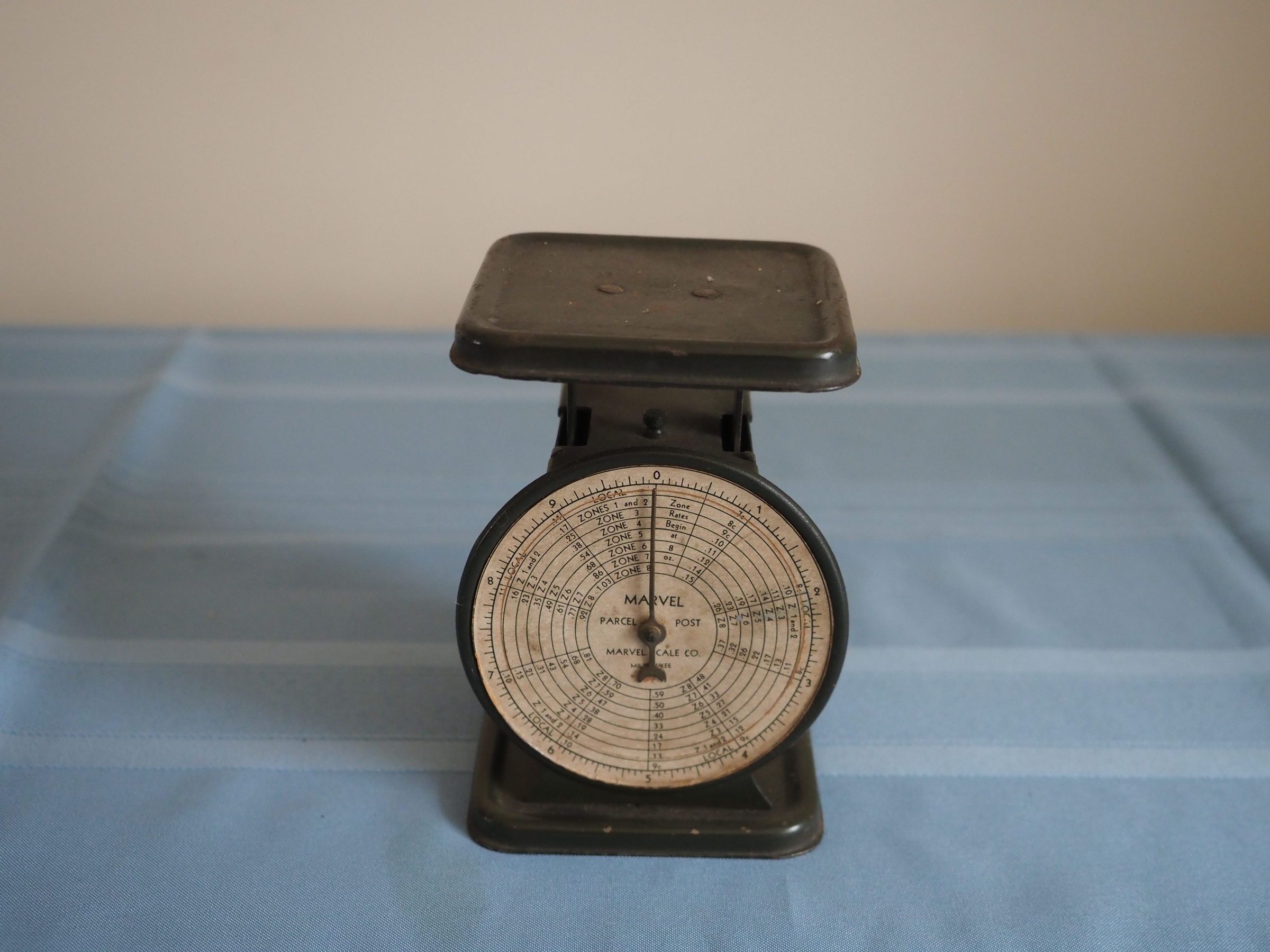 Postal scale with rounded face, divided by zones 1 to 9Made/Created