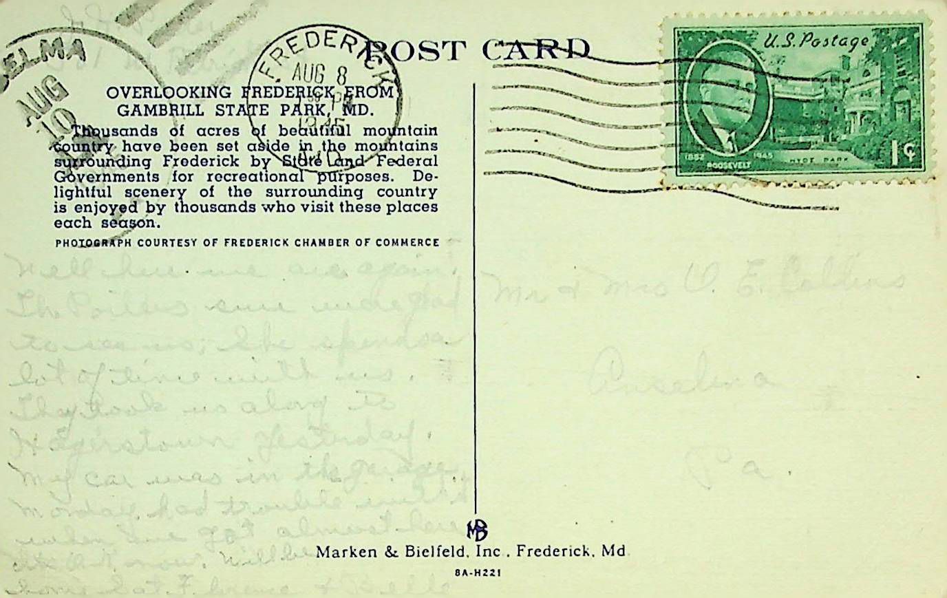Postcard sent to O.E. Collins 8/10
