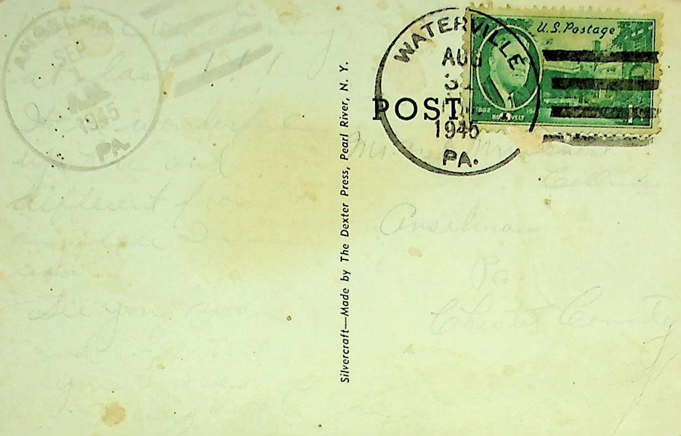 Postcard sent to O.E. Collins Sept. 1, 1945
