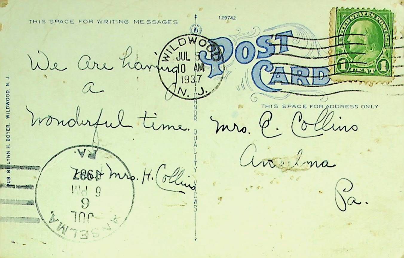 Postcard sent to O.E. Collins 7/6/1937