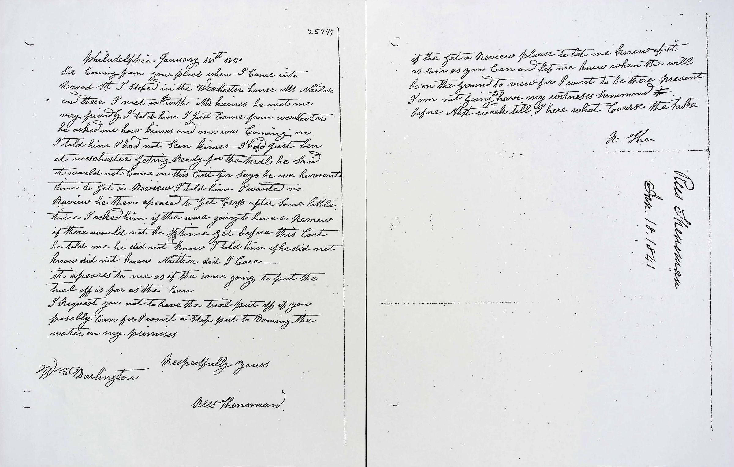 Letter from Rees Sheneman to William Darlington Hand written copy to be attached.Context
