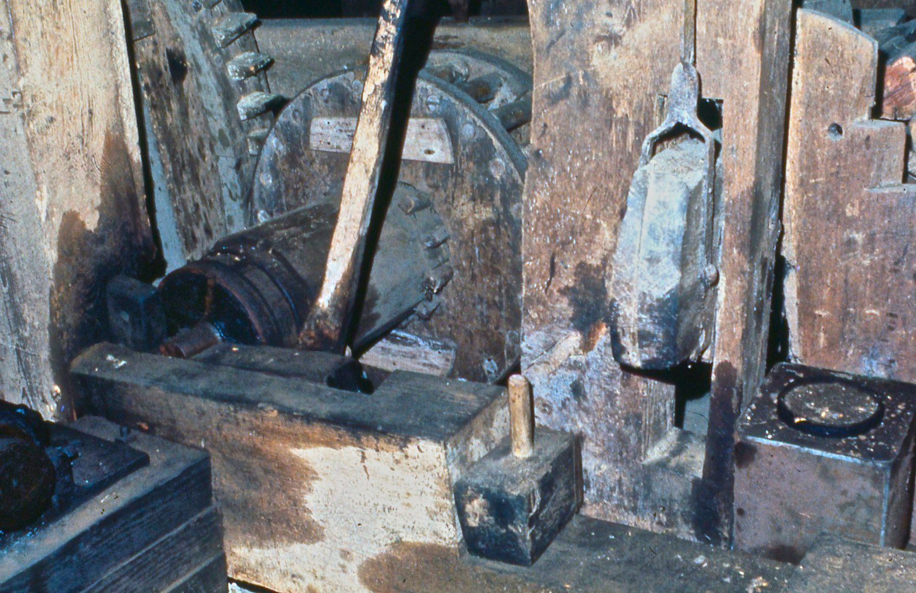 Photo of right countershaft, brayer for center burh stone, cutout flour bin.Photograph Details