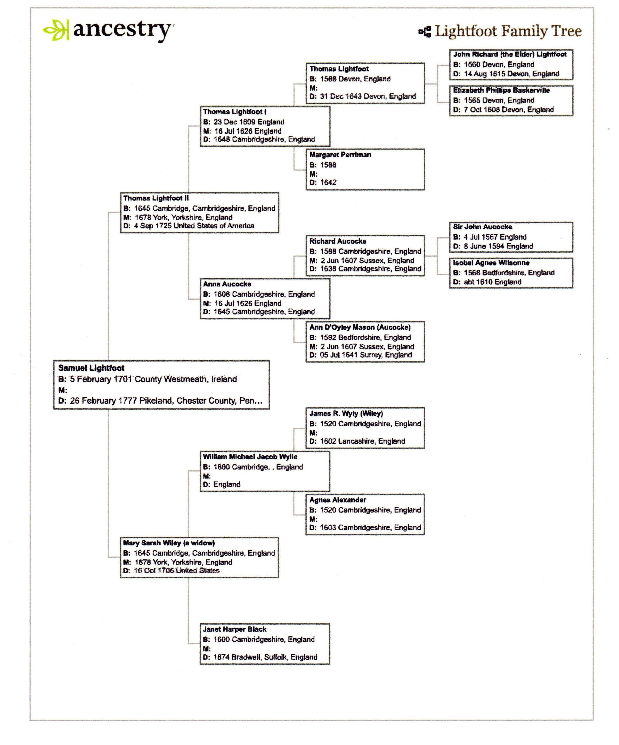 Samuel Lightfoot Family Tree