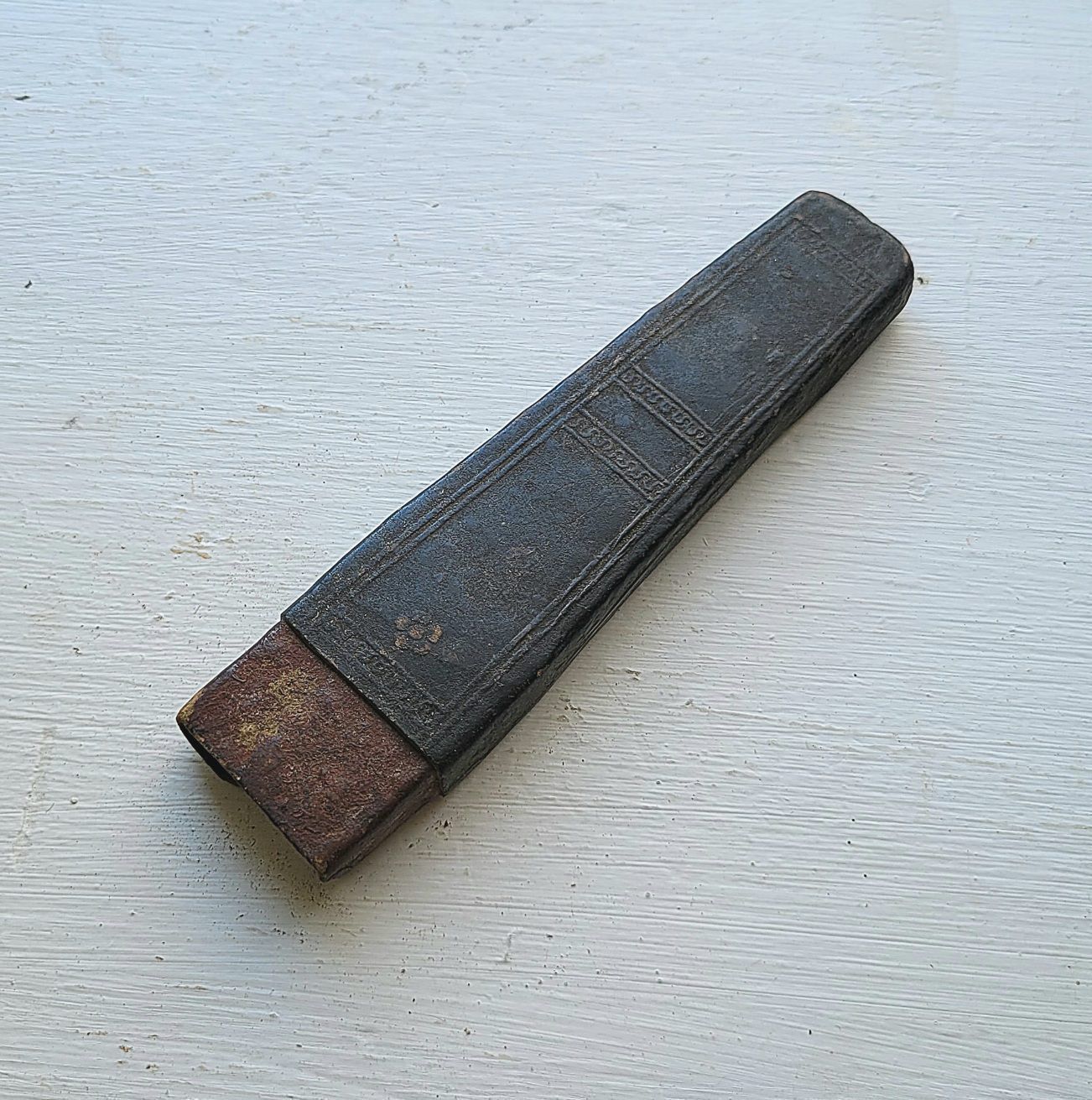Straight razor box, tapered with design embossed on one side; missing lidDimensions