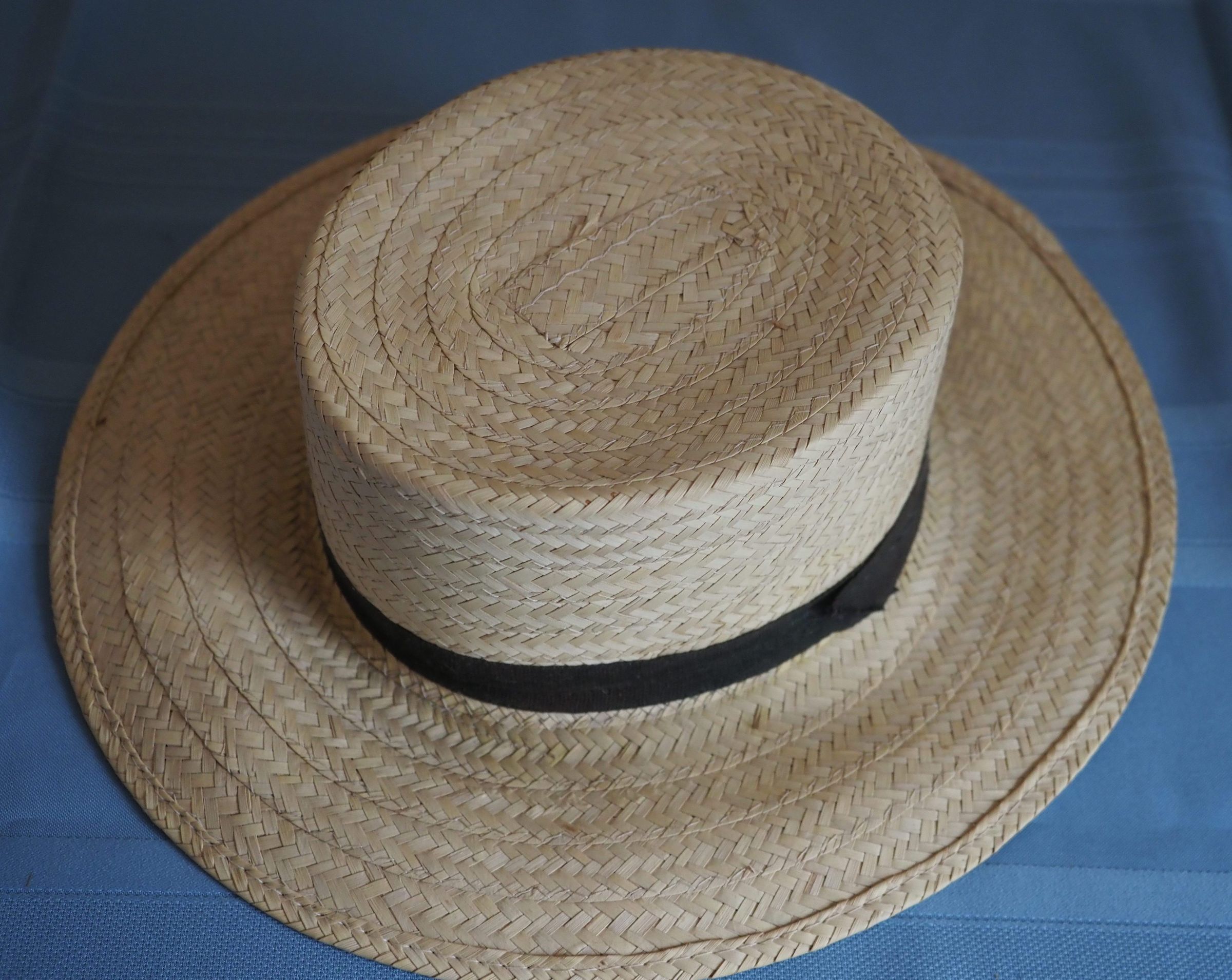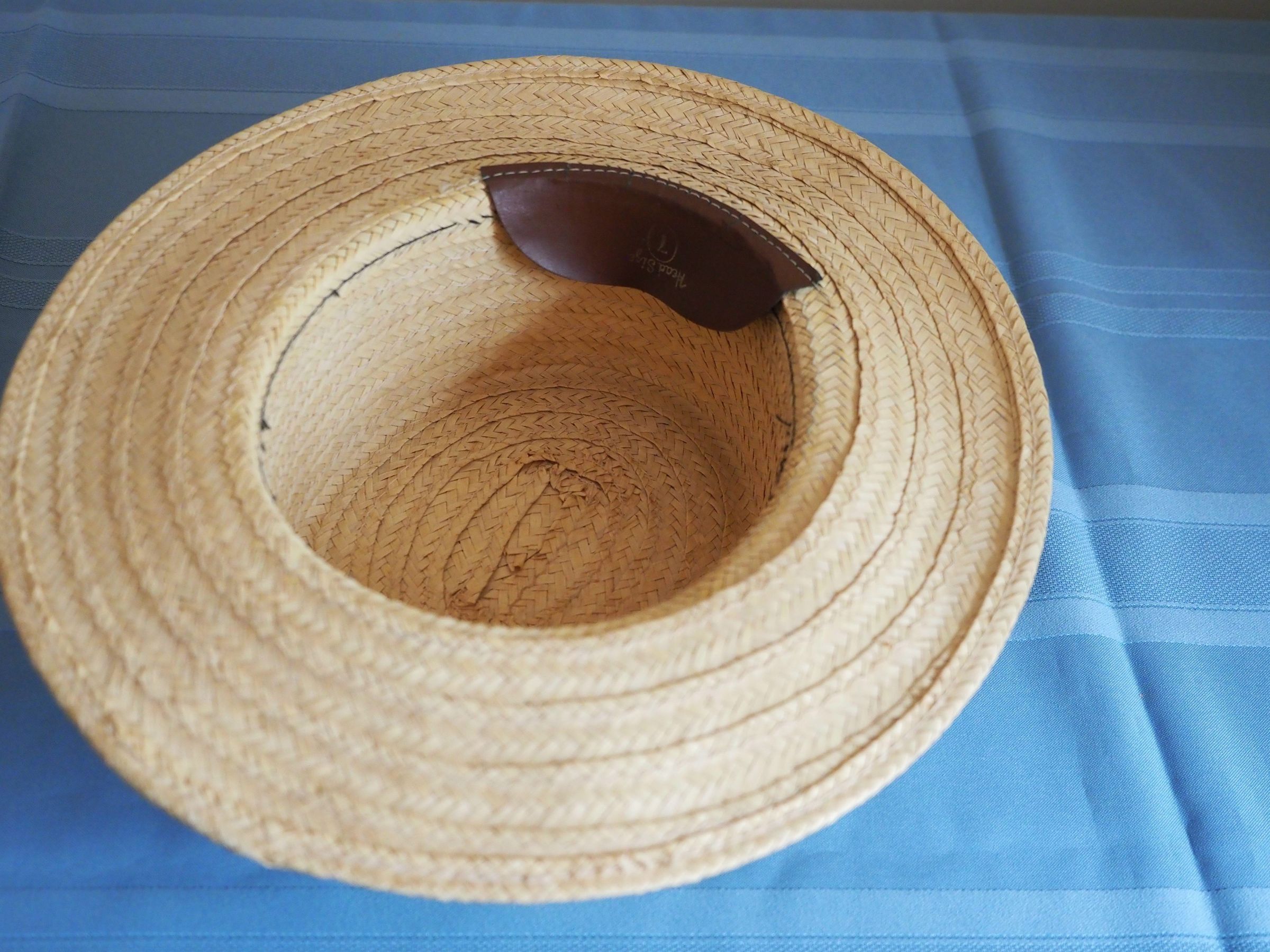 Straw hat with black band, leather tag Size 7Label/Inscription/Signature