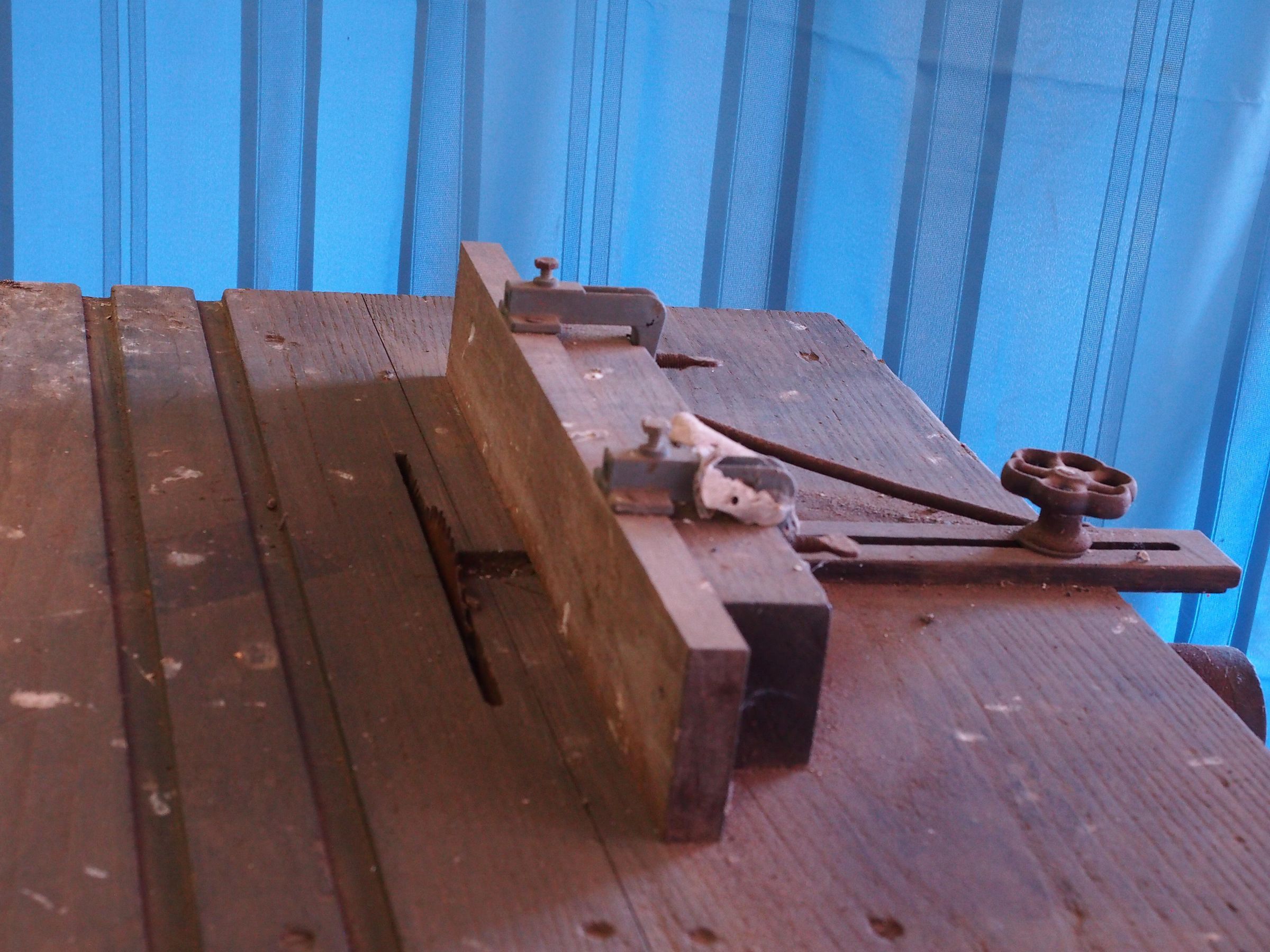 A part of the machine bears the inscription “Bergner Hardware Company, Narberth, PA”. This table saw, and the adjacent Jig saw (WB-7), shared the same electric motor. The drive belt would be moved from one to the other.Use