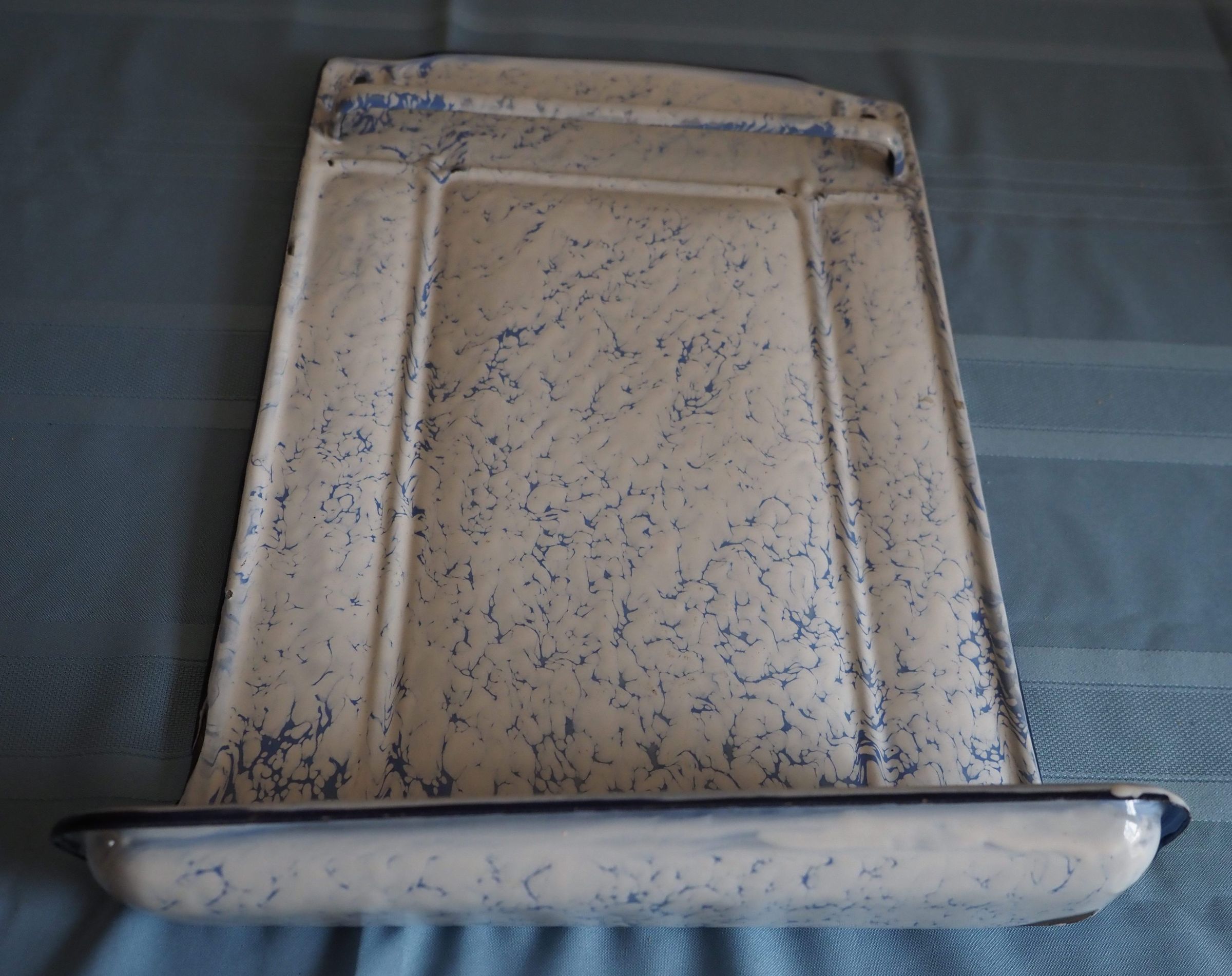 Enamel utensil rack with handle on top and trough on bottomDimensions