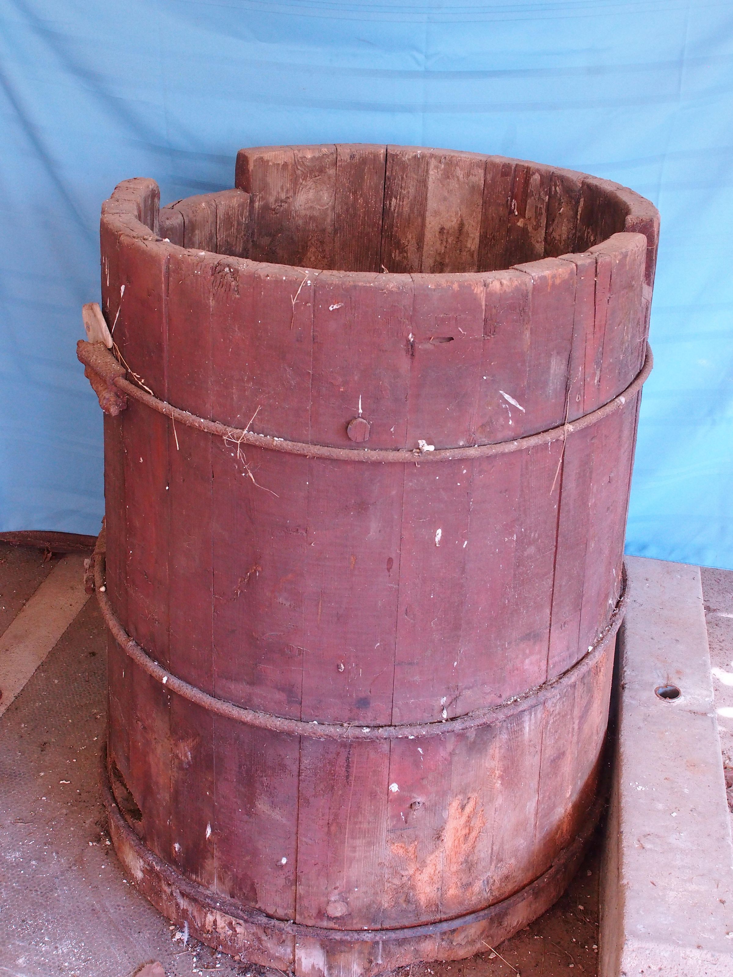 This barrel is tapered in towards the top, measuring