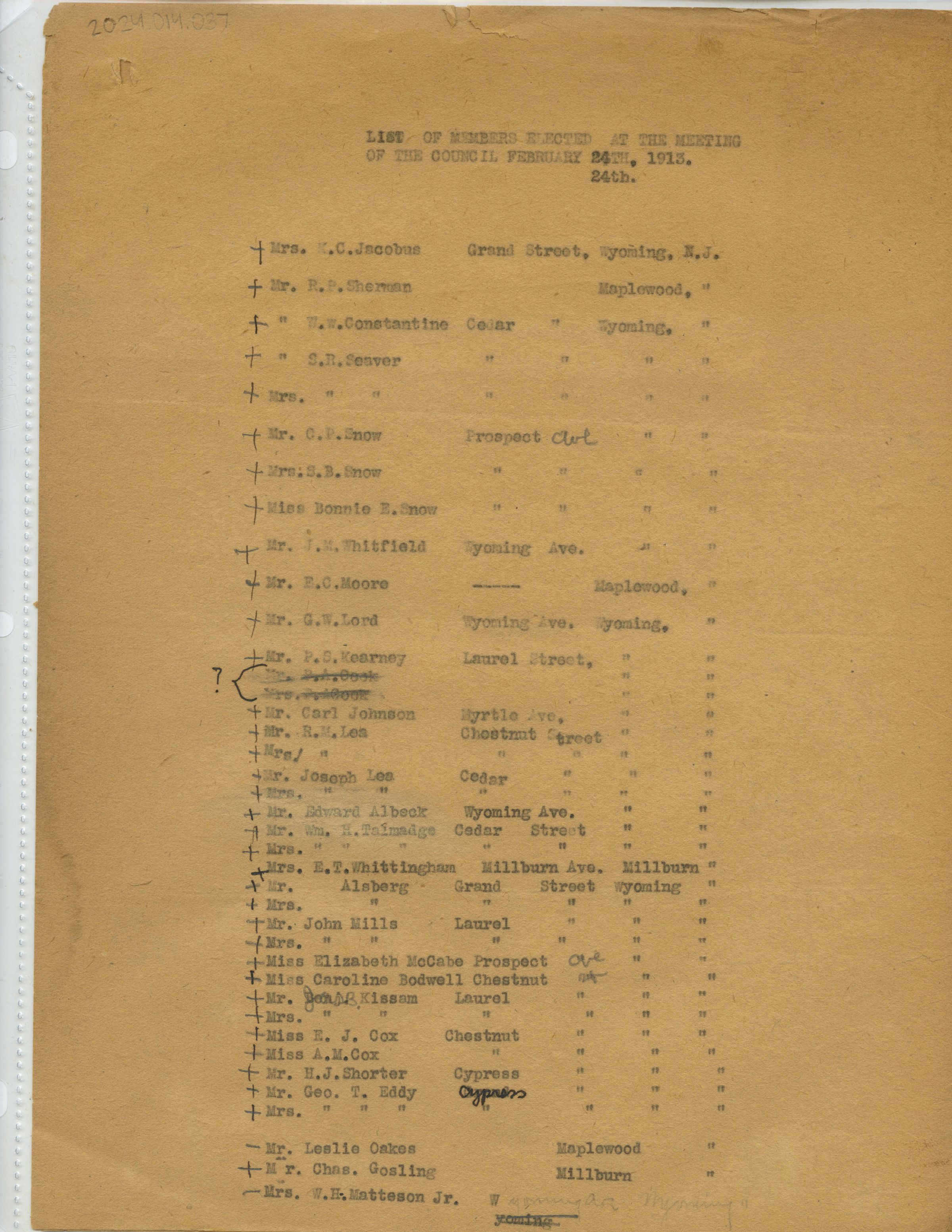 Typewritten list members elected at the Wyoming Civic Association meeting held on February 24, 1913.Collection