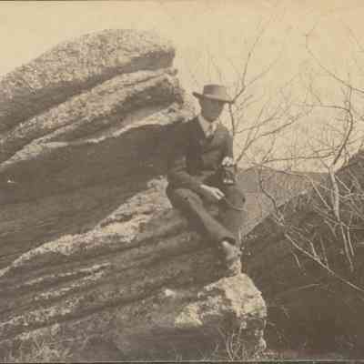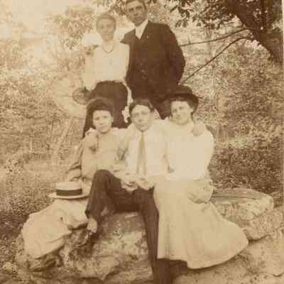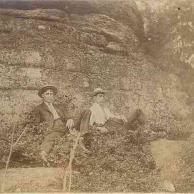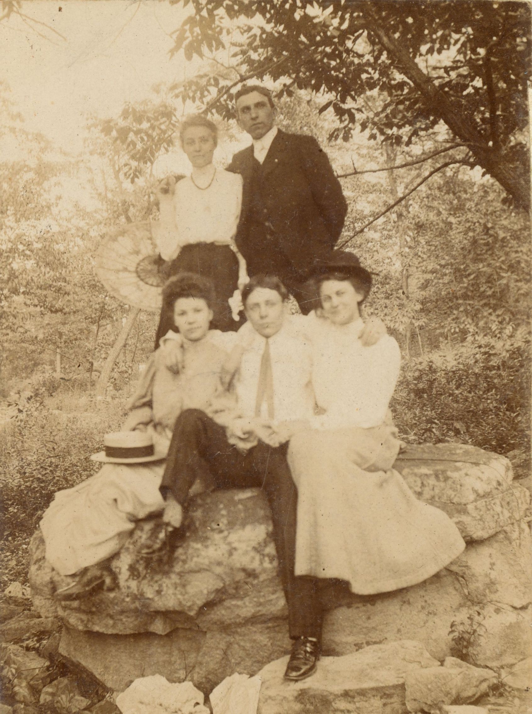 Photographs unidentified young people posing in a rocky landscapes, possibly South Mountain Reservation, c. 1900.Collection