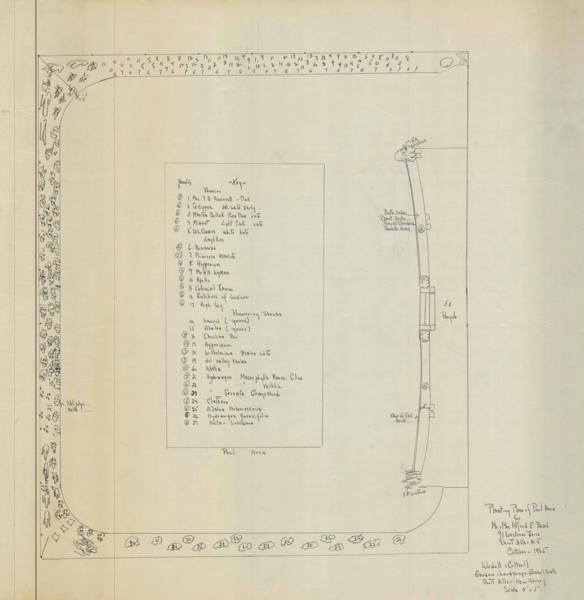 Wodell and Cottrell Planting Plan of Pool Area for Mr. and Mrs. Alfred E. Busch, 19 Western Drive, Short Hills, October 1965.Collection
