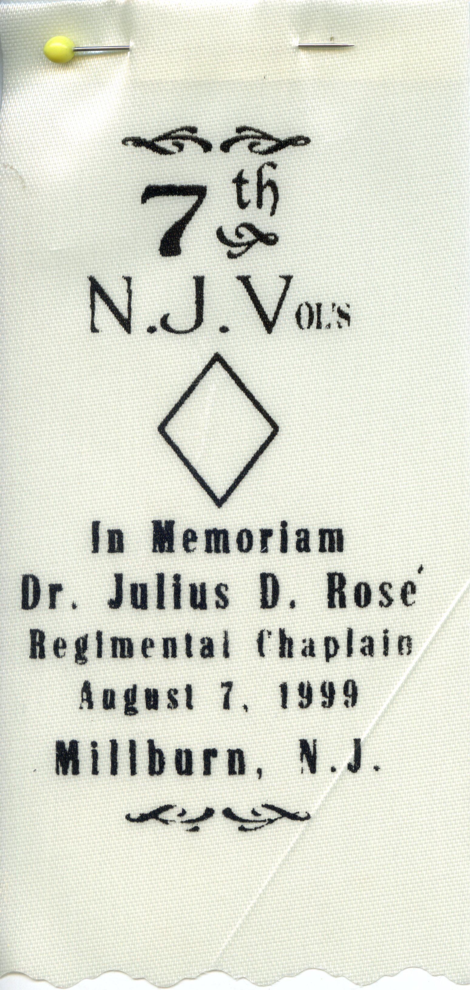 Ribbon from the Memorial Ceremony honoring Dr. Julius David Rosé, Chaplain of the 7th Regiment New Jersey Volunteer Infantry at St. Stephen's Episcopal Cemetery on August 7, 1999.Acquisition