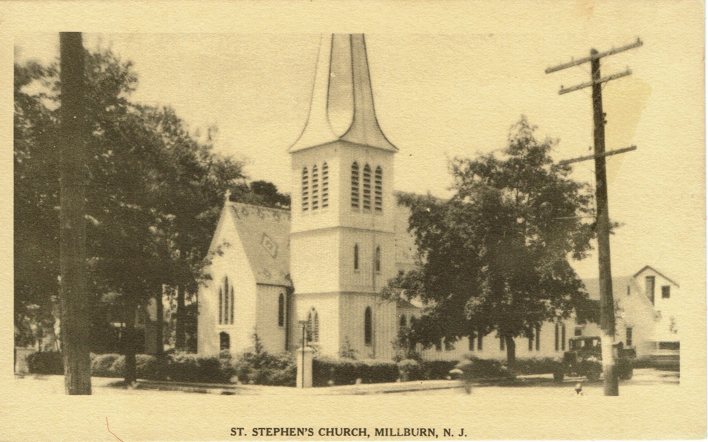 Postally unused. Photographic postcard of St. Stephen's Episcopal Church as viewed from the corner of Main and Church Streets.Collection