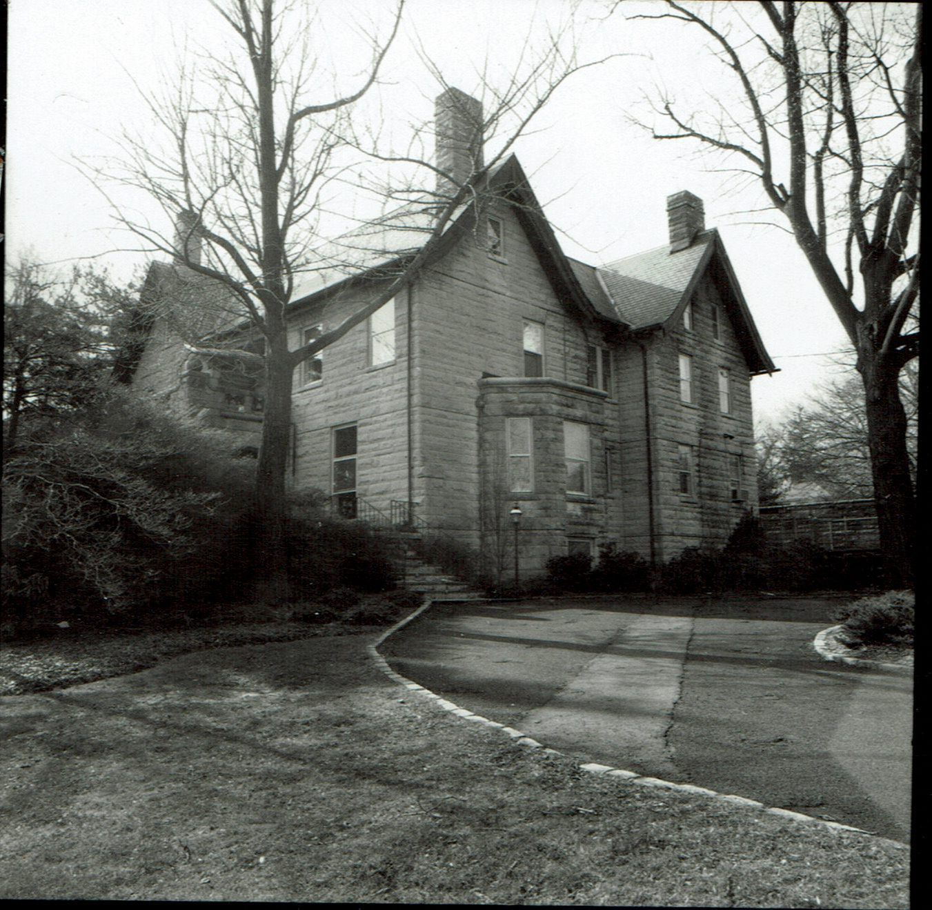 Companion house to 303 Hobart, "Stonehaven" or "Twin Oaks," the design of the house was previously attributed to architect George B. Post, but research into the house by William Barry Thomson suggests it was designed by architect Tysilio Thomas, who was the first owner of the house.Collection