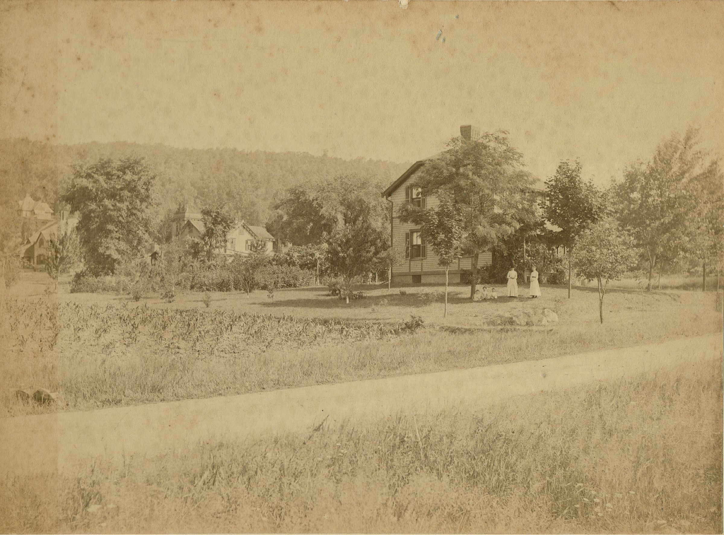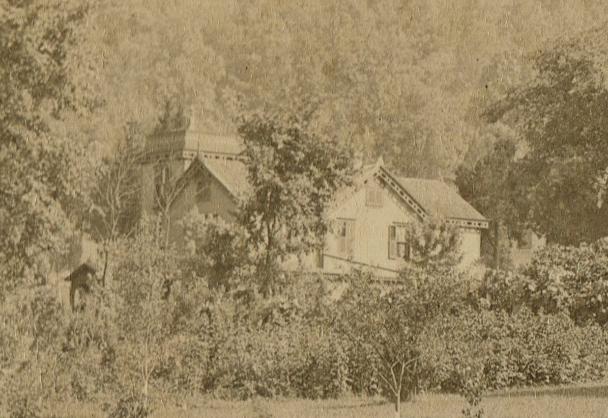 Detail of photograph of the Wyoming area from c. 1888, showing the Tuscan Villa Tower House at 109 Glen Avenue. The house was constructed in c. 1881 by the same architect/builder who designed 7 other tower houses in the area, including 49 Chestnut Street.