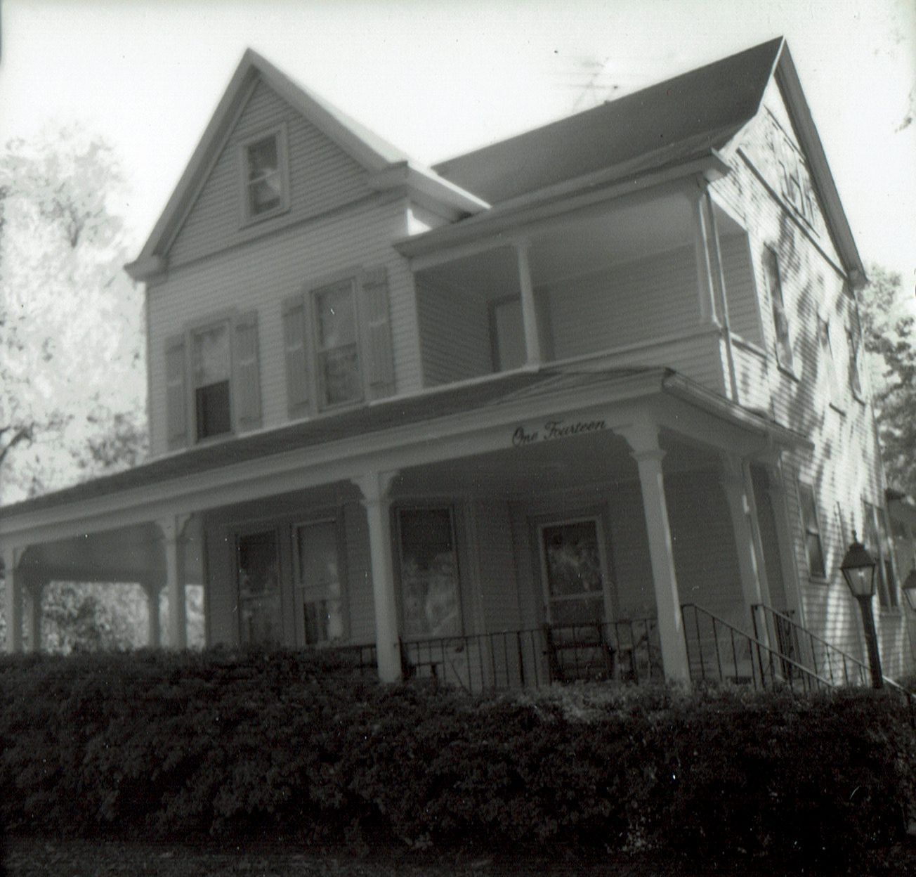 Photograph from the 1978 David Gibson historic survey of 114 Glen Avenue. According to Historical Society records, the house was originally located at the Southeast corner of the intersection of Sagamore and Chestnut. The house faced Sagamore. It was moved to its present location at 114 Glen Avenue, around c. 1900 at which time Sagamore Road was closed for 3 weeks.Collection