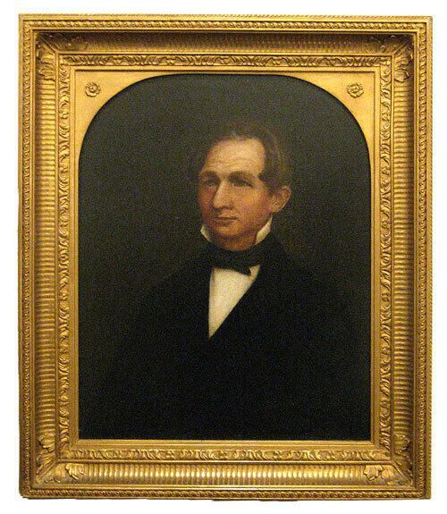 Oil portrait of Stewart Hartshorn's father, Jacob Hartshorn. Back of portrait is labeled: "JACOB HARTSHORN -- B. 6 Feb. 1807, Providence RI; D. 11 Nov. 1859, Boston MA; M. 4 Nov. 1827, Jane Dixon Fisher; Portrait inherited from the Hartshorn estate by his great-granddaughter, Catherine Jennette Hartshorn Campbell (1916-1989), who gave it to her daughter, Jennette Hartshorn Campbell" Slight flaking of paint on Jacob's upper lip and directly to the left of that spot. Portrait apparently needs to be cleaned of old varnish.Acquisition