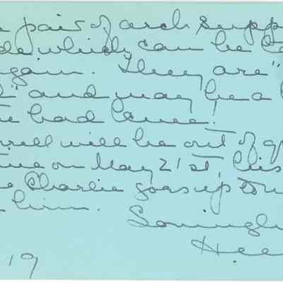 Two-page handwritten letter and envelope from Henrietta Stout to Miss A.G.Stout 5324 Knox Street, Germantown, Pennsylvania (Philadelphi) postmarked Short Hills, May 19, 1916, 9:30 am.Acquisition