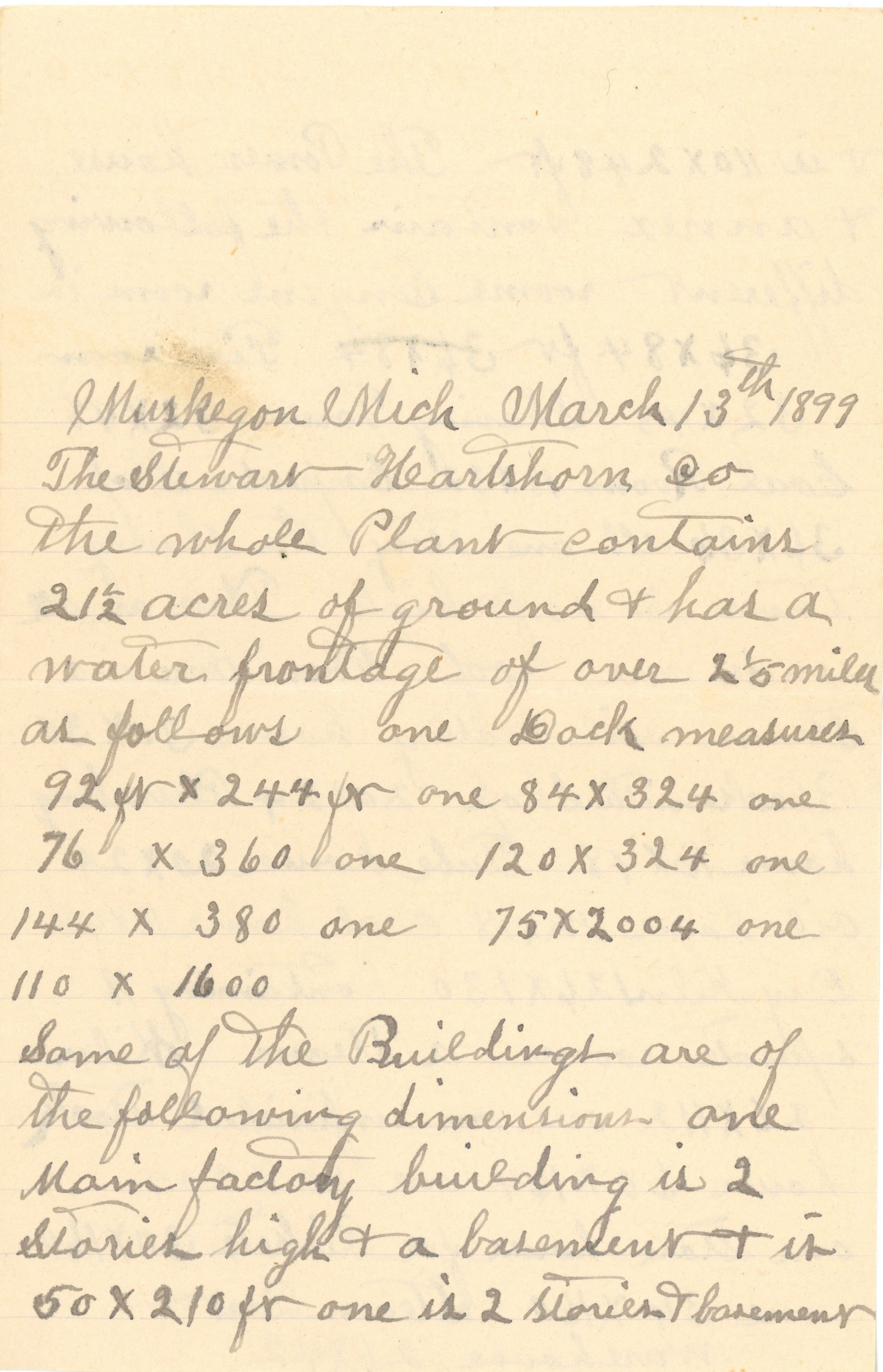 Hartshorn: Stewart Hartshorn Muskegon Michigan Factory Letter, 1899Entry/Object ID