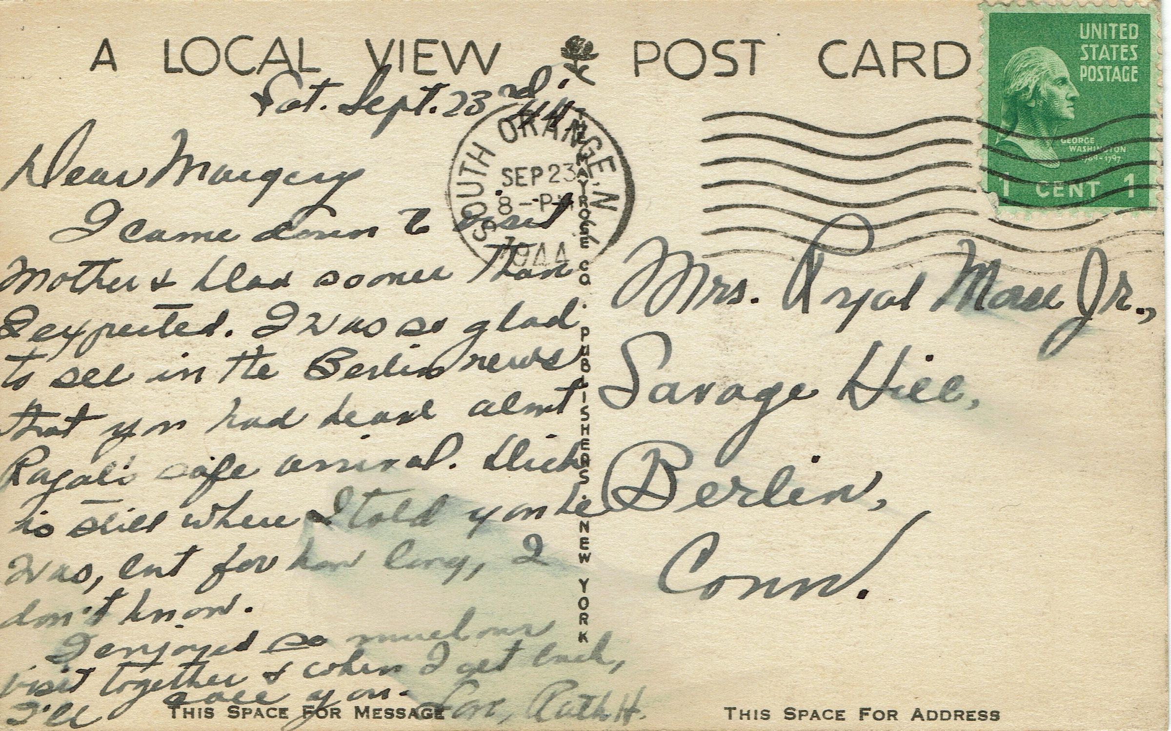 Postmarked South Orange, September 23, 1944, 8:00 pmCollection