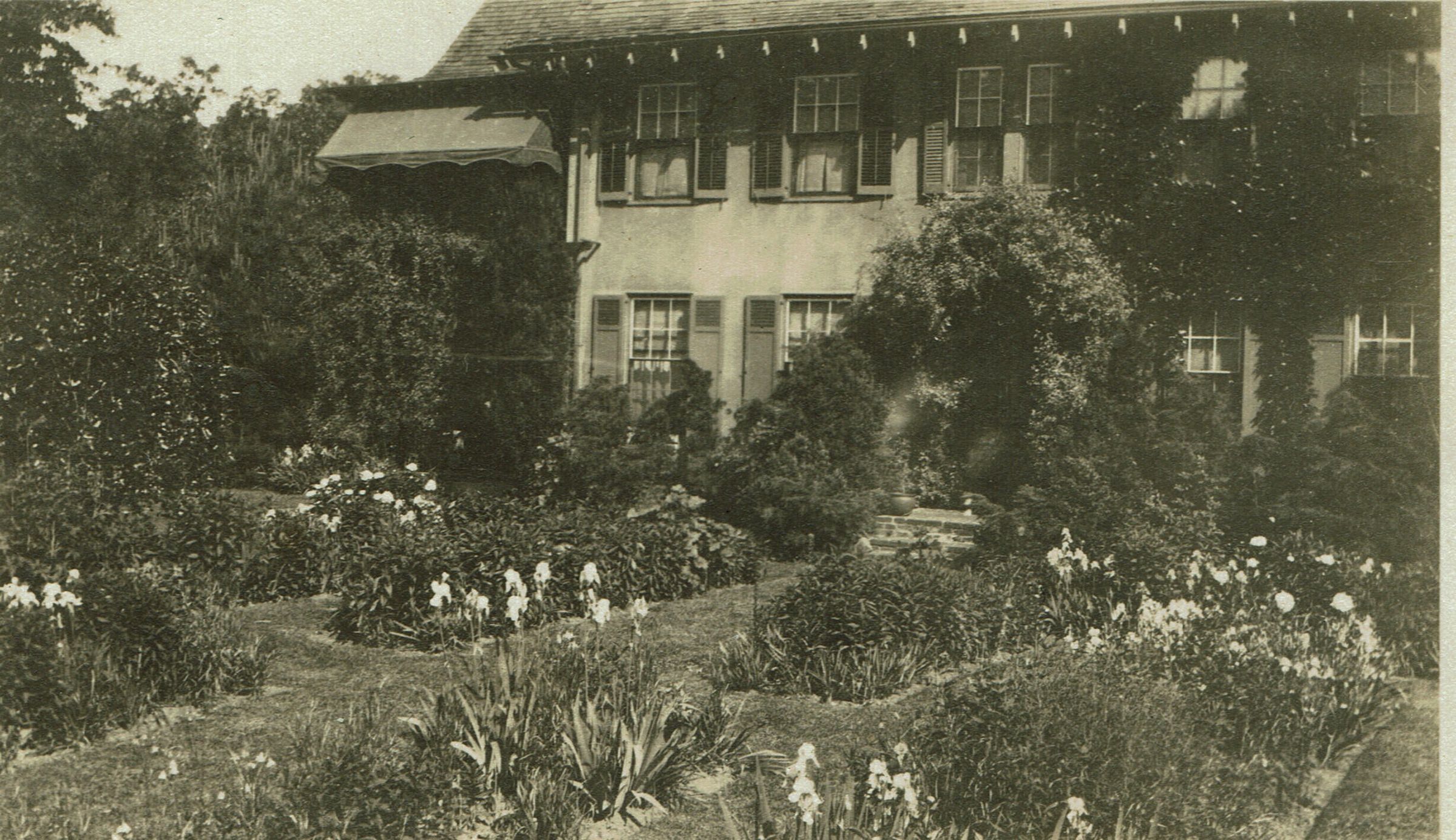 View of 17 Birch Lane Garden House was known as the Bosland House. Notes in file state: "Bosland House--Rhodes had it built for the Rhodes family to live in by a Boston architect, whose first name was Fred and was a classmate of Mr. Rhodes at MIT. They bought that land from William Hill. He owned a big block, from Adams Avenue all the way to the Walbridge house, possibly including the Field Club. Miss Rhodes looked up the deed of the now-Sprague lot (33 Birch) and found deed restrictions as follows: property could not be used for a brewry or to raise pigs; any house built must cost over $5,000.Acquisition