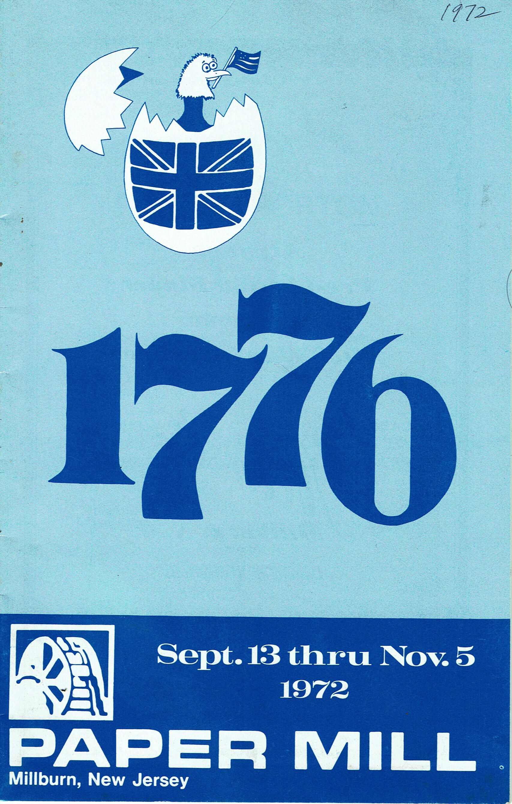 1776 Paper Mill Playhouse Playbill, 1972Entry/Object ID